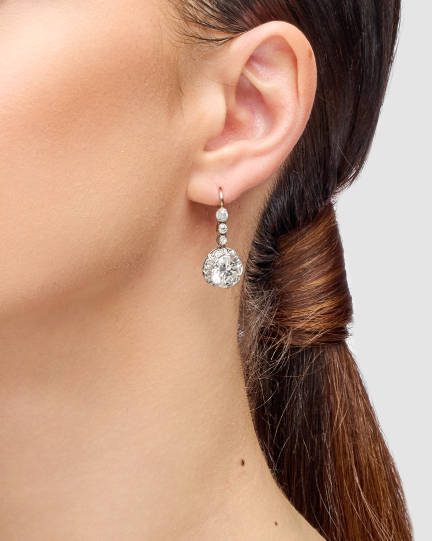 in white gold with two Old European-cut diamonds weighing approx. 3.00 ct each for a total of approx. 6.00 ct.