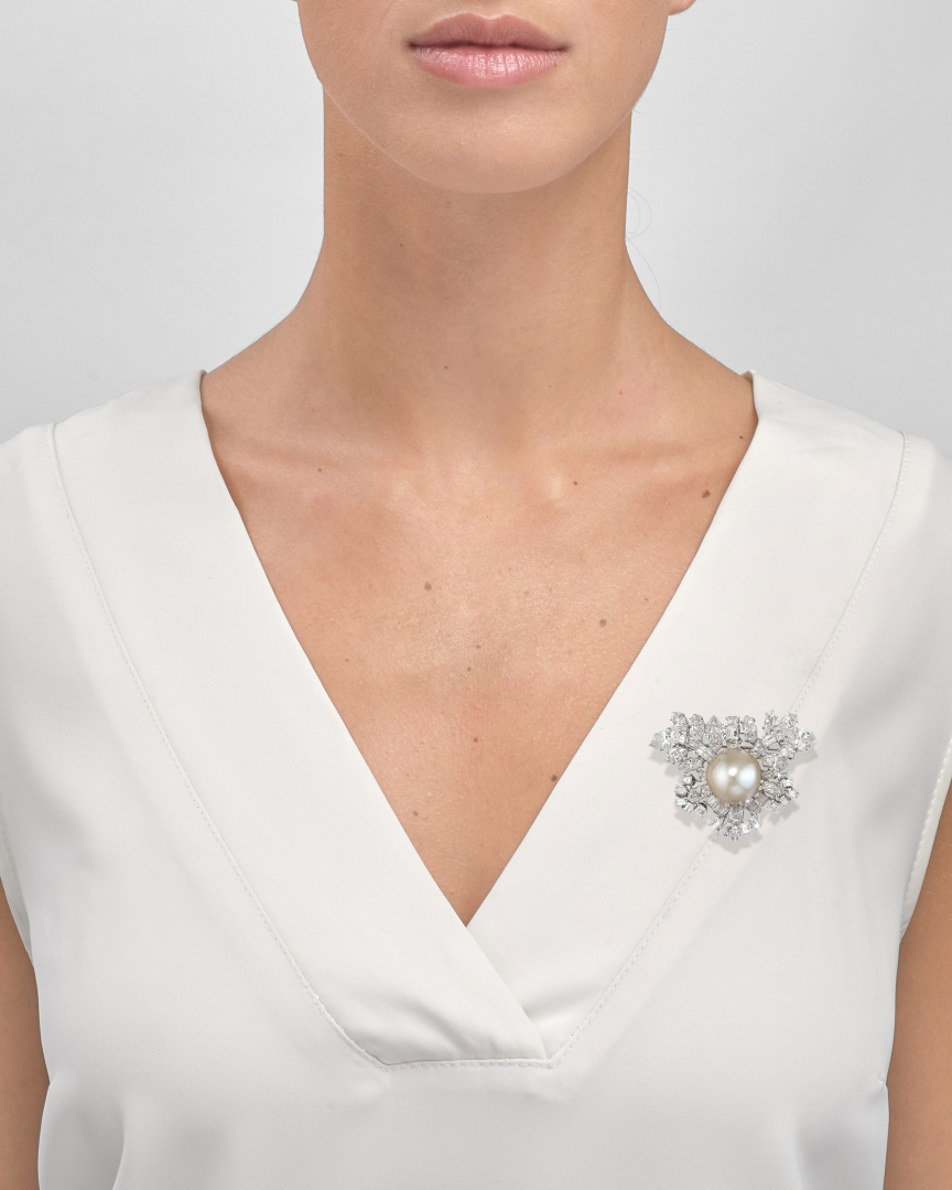 SPILLA IN DIAMANTI E PERLA COLTIVATA