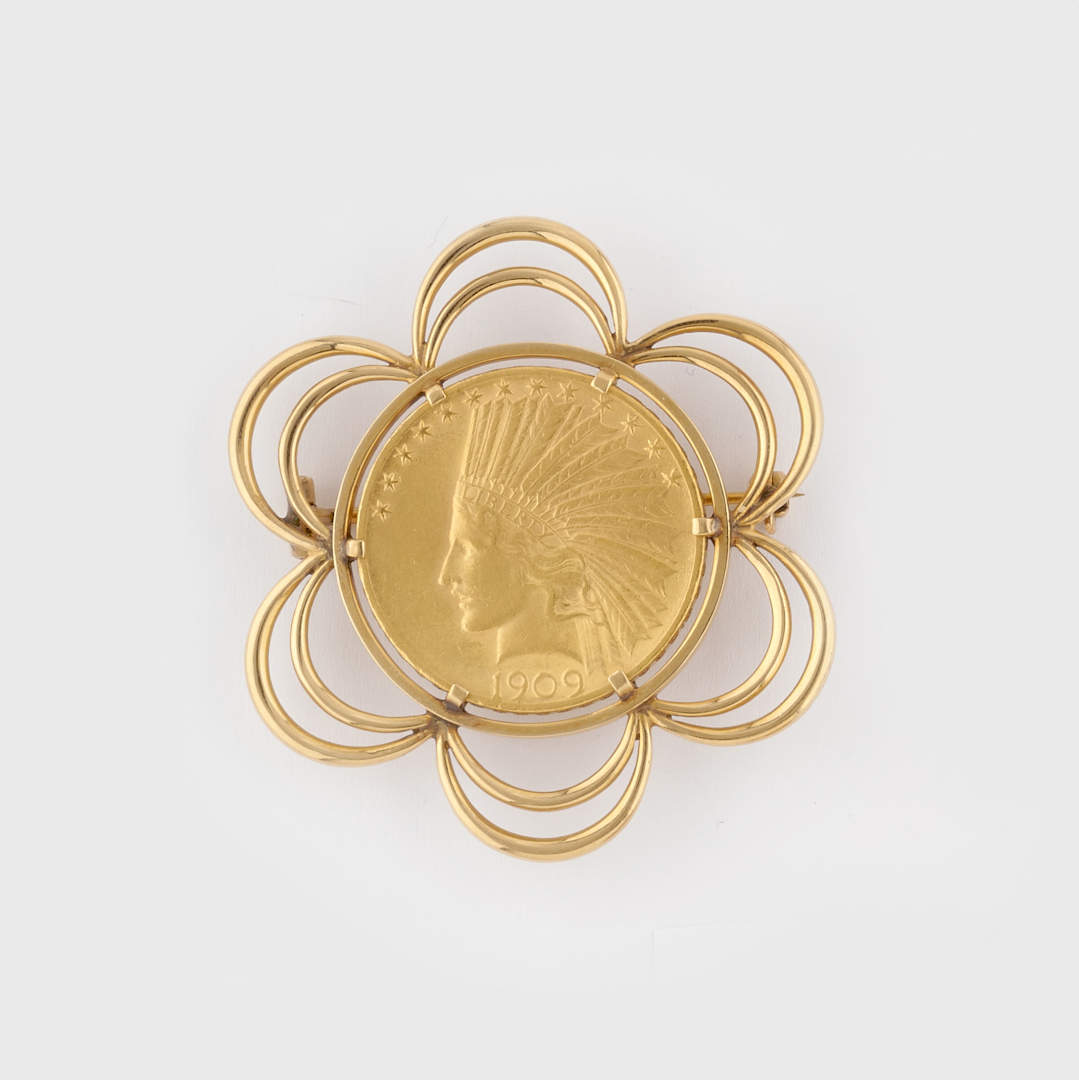in yellow gold with an American 10 Dollar coin from 1909.