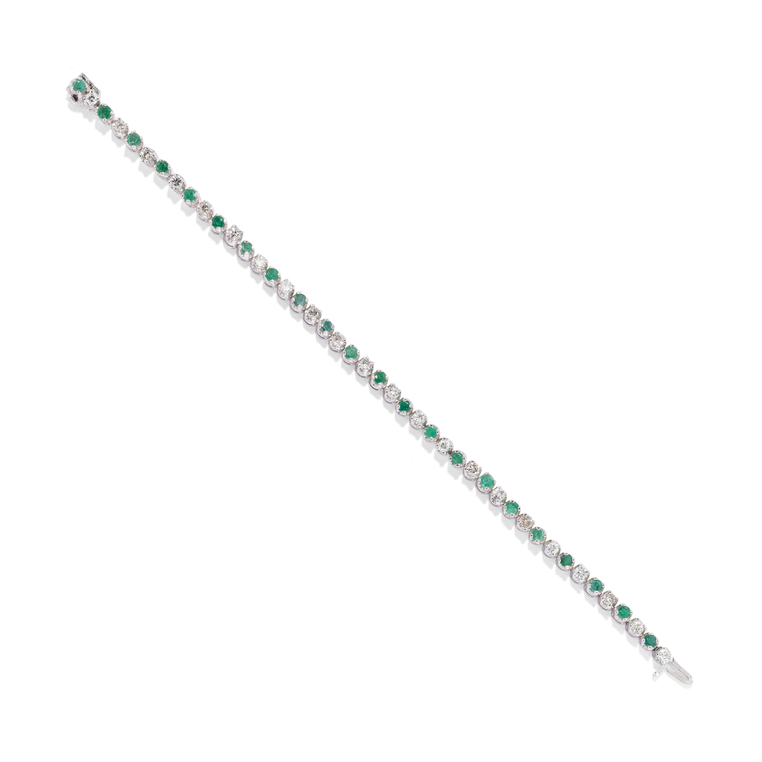 in white gold set with alternating diamonds weighing approx. 1.70 ct and emeralds weighing approx. 1.50 ct.