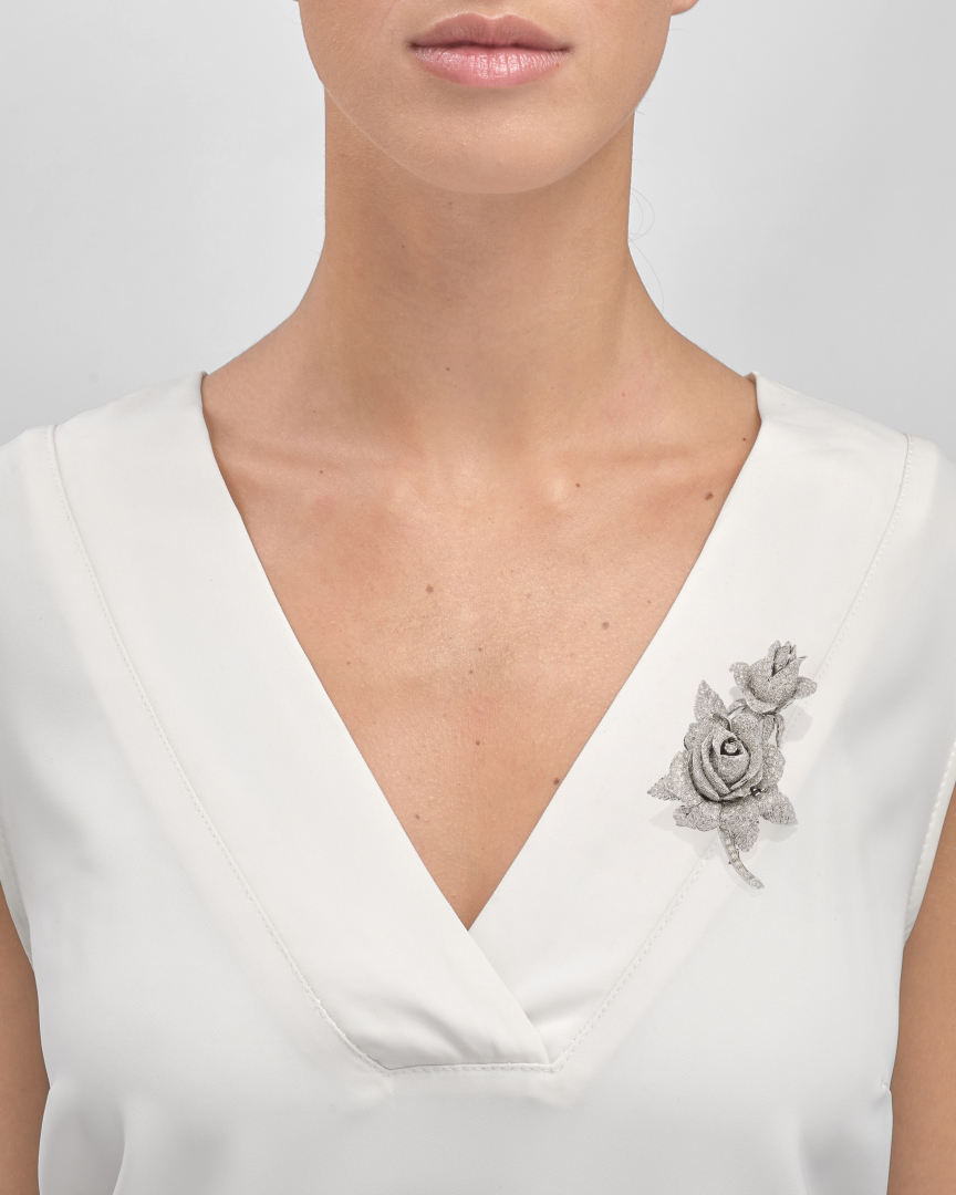in white gold, pavé-set with diamonds weighing approx. 4.50 ct, depicting a spray of roses. In Peppino Capuano - Roma original fitted case.