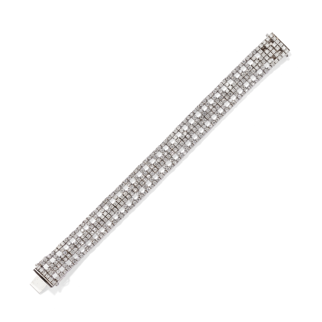 in white gold designed as a large, flexible band with geometric motif in round brilliant-cut diamonds weighing approx. 9.00 ct all together.