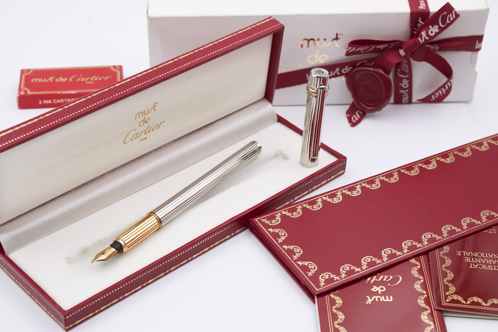 CARTIER MUST DE FOUNTAIN PEN, BOX AND GUARANTEE