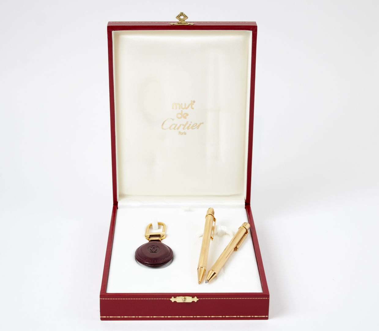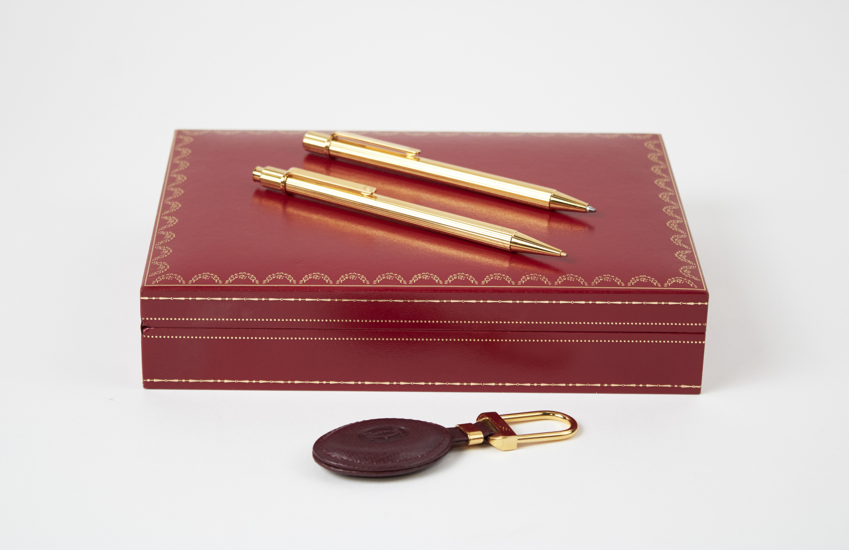 CARTIER MUST DE – SET WITH BALLPOINT PEN, MECHANICAL PENCIL AND KEYRING, BOX AND GUARANTEE