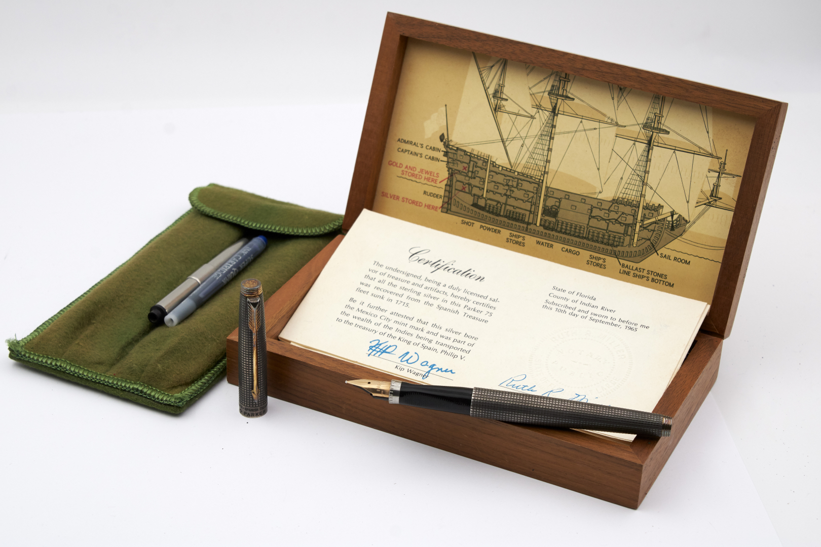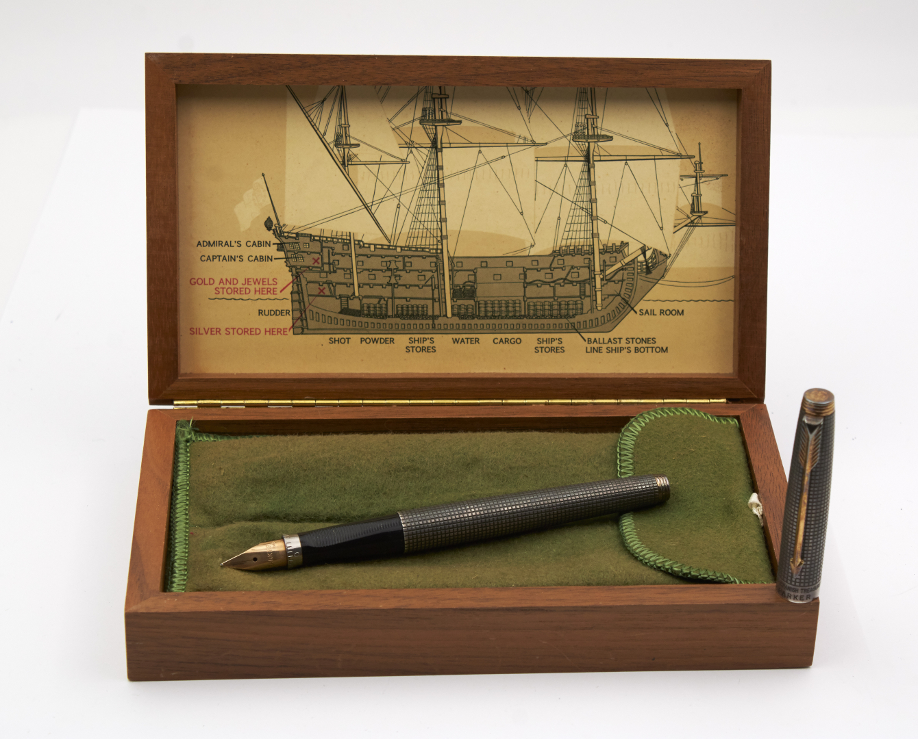 PARKER 75 SPANISH TREASURE 1715 FOUNTAIN PEN, BOX AND GUARANTEE