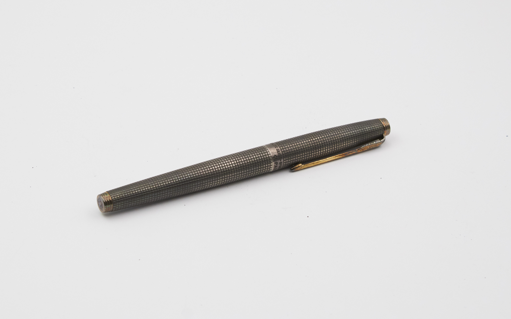 Adjustable 14K gold signed nib, F size, converter filler, barrel made of silver recovered from the Spanish shipwreck, featuring on cap and endpiece the Mexican assay office marks and the Eagle of Purity emblem.