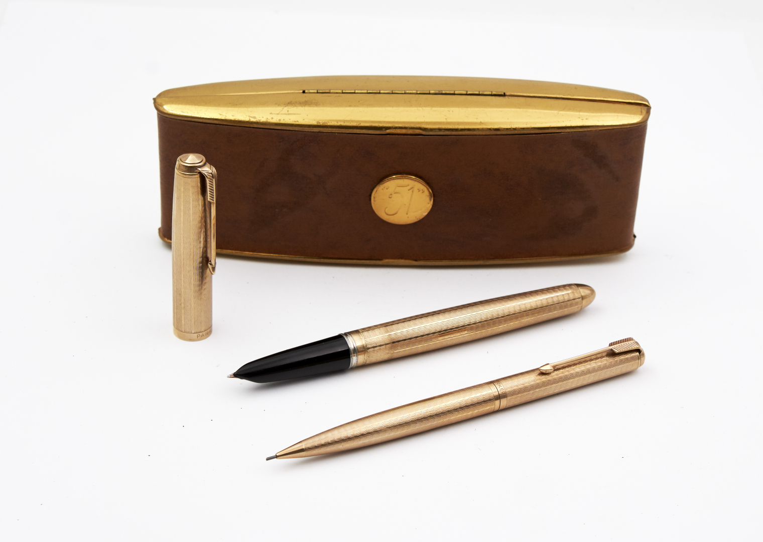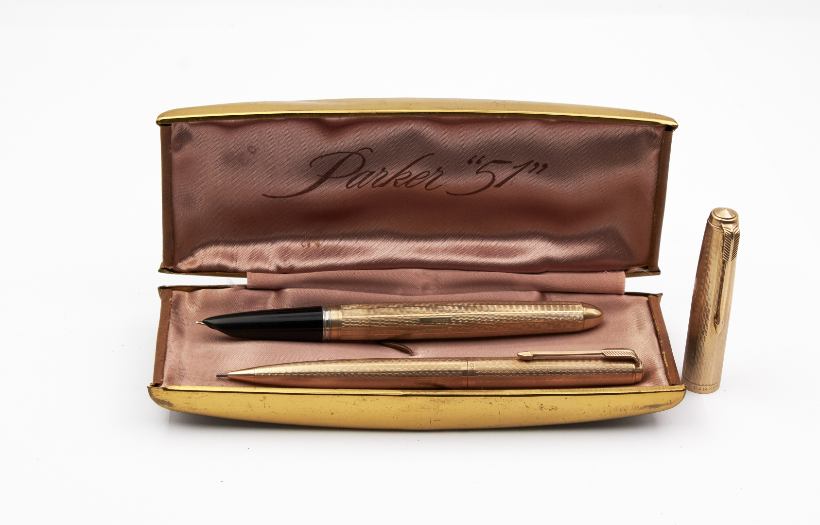 PARKER 51 PRESIDENTIAL GOLD PARURE FOUNTAIN PEN AND MECHANICAL PENCIL
