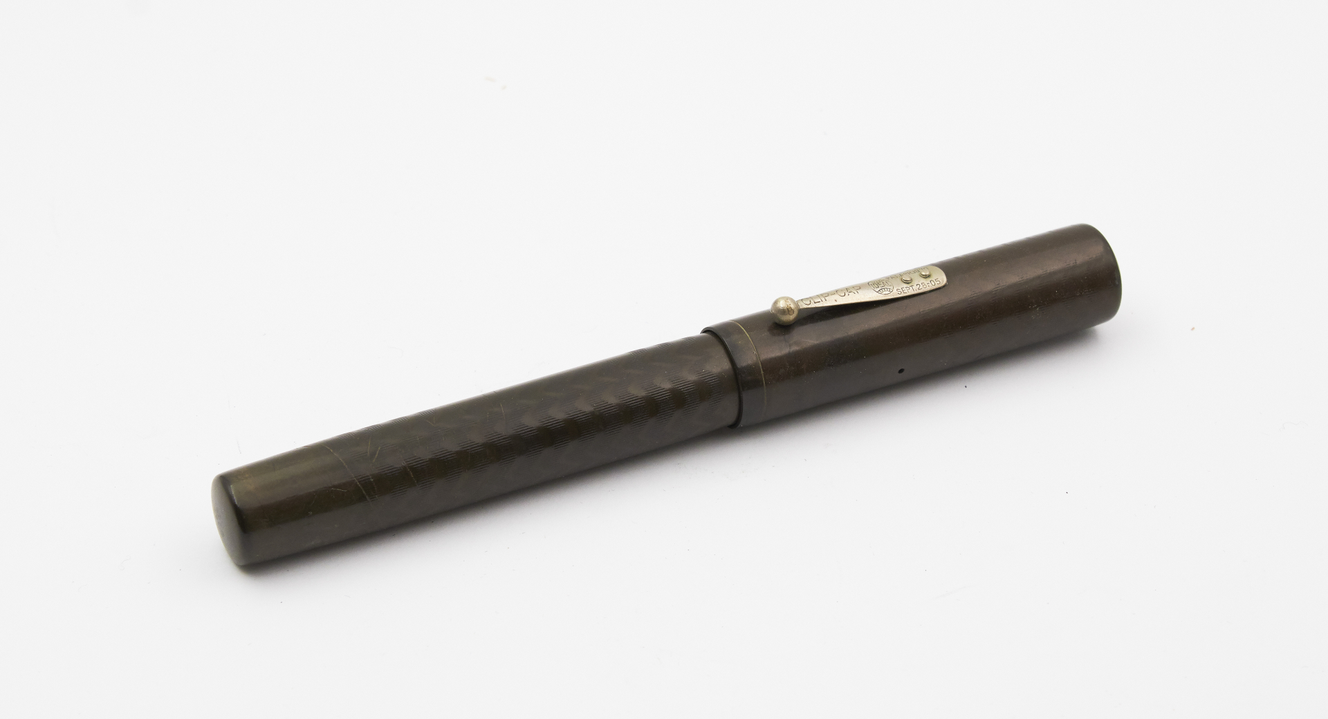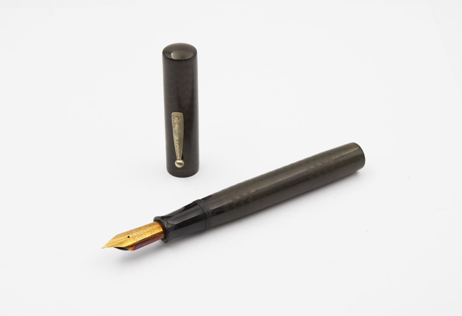 Signed gold n. 10 nib, eyedropper filling, chased ebonite barrel, Clip-Cap clip.