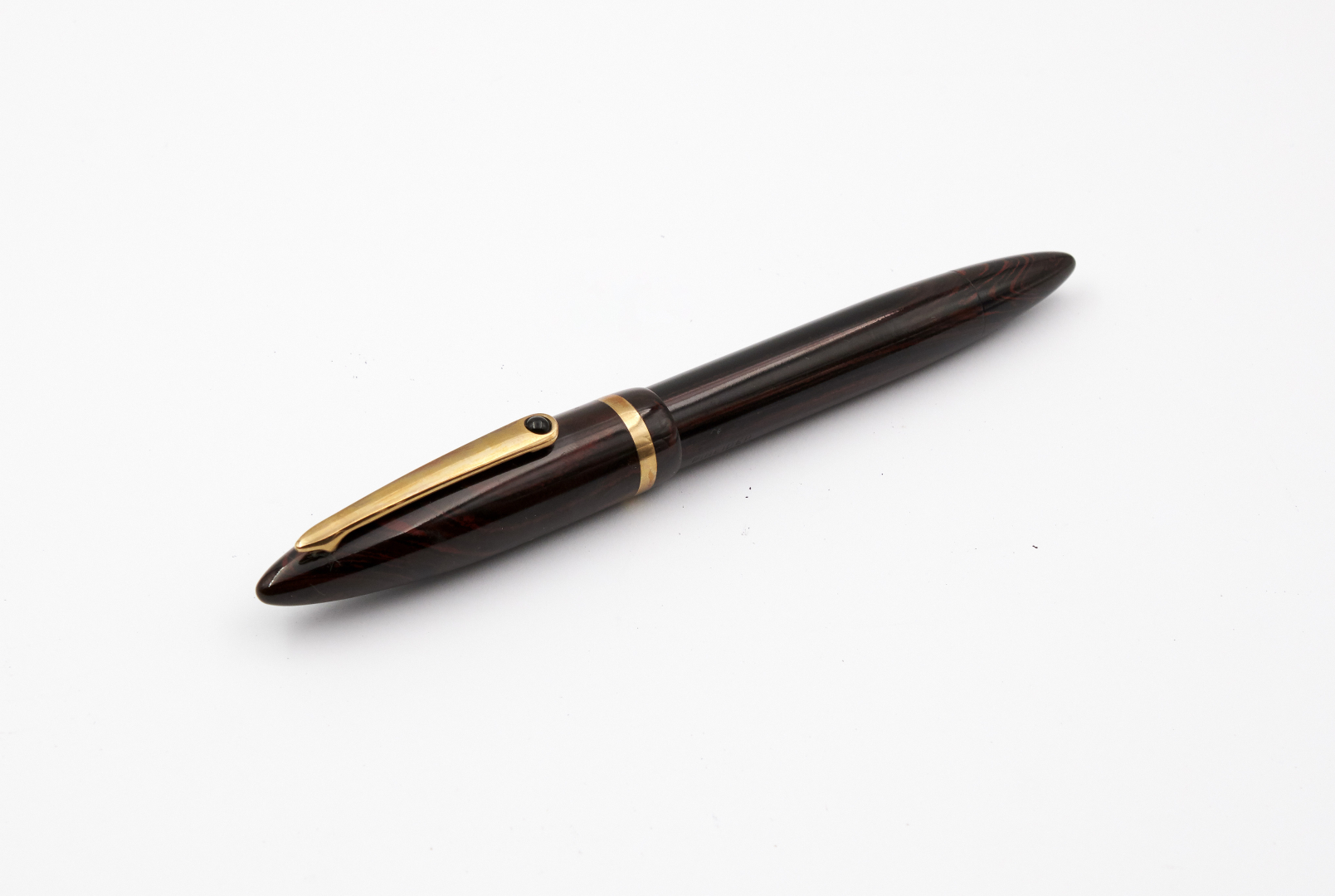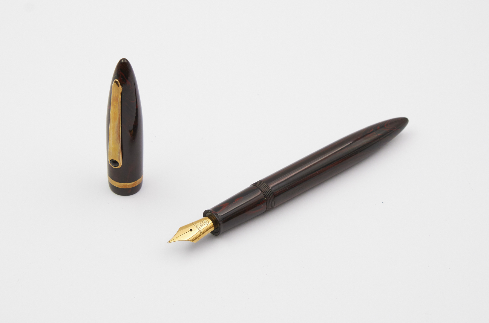 Signed 18K gold nib, size F, piston filler, wooden body.