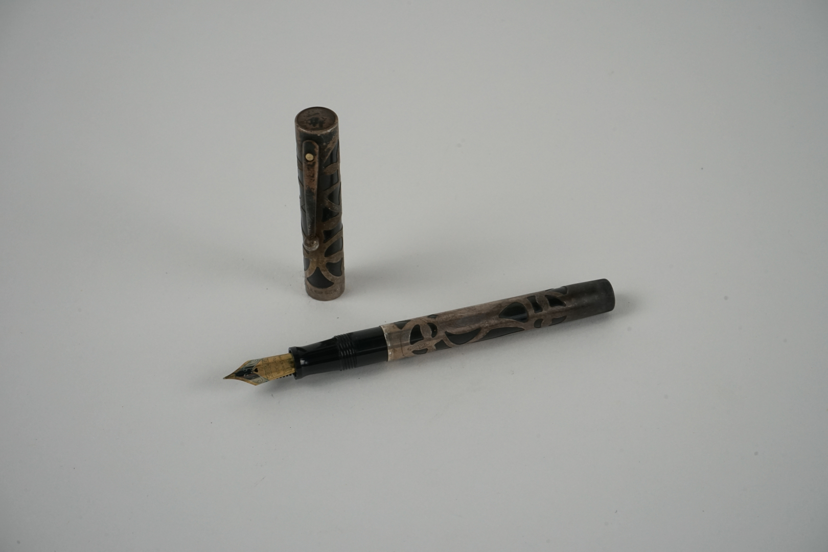 Body covered with 925 silver fretwork, signed 18K gold two-tones nib.