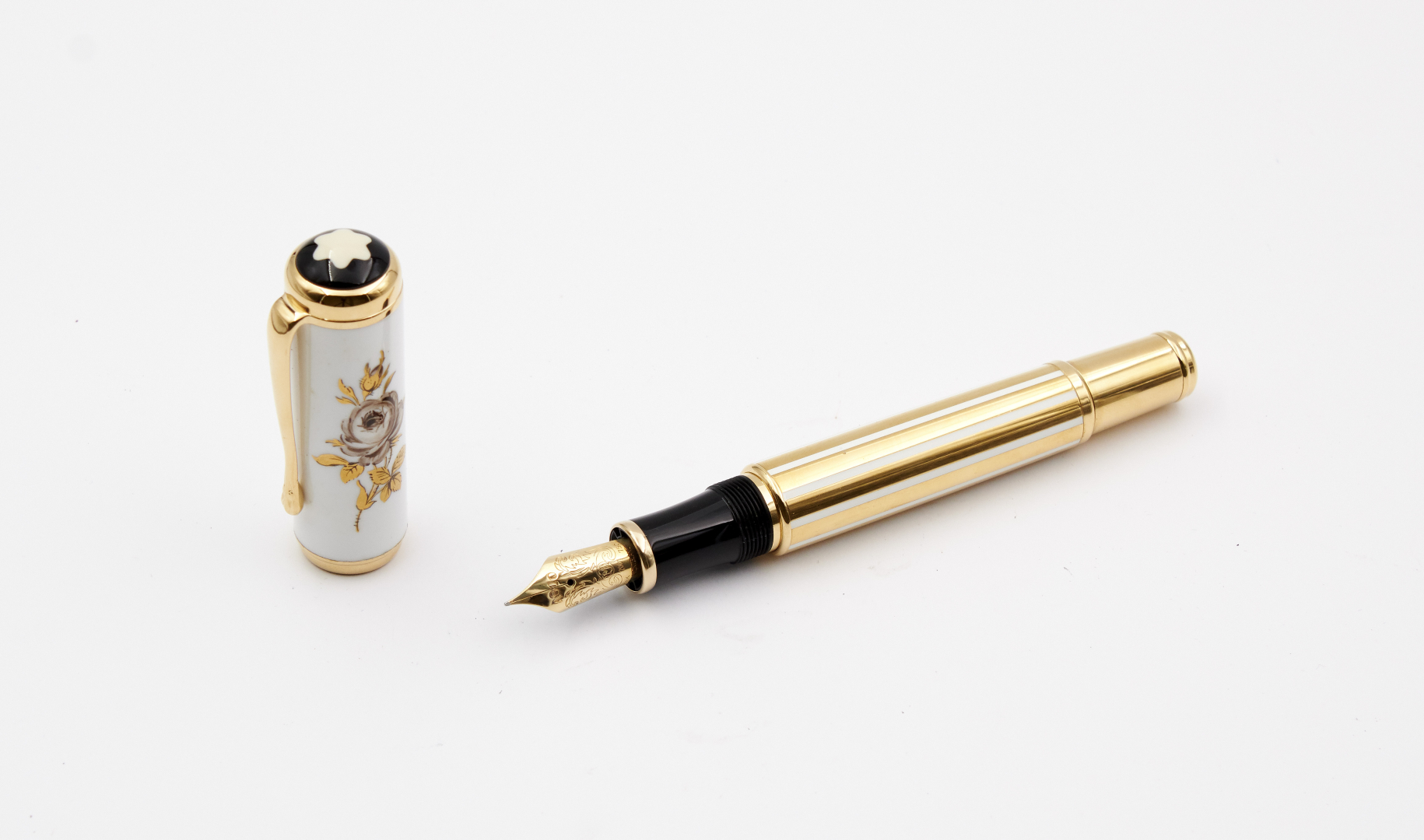 N. 2352/4810, 18K gold nib, size F, Meissen porcelain cap.