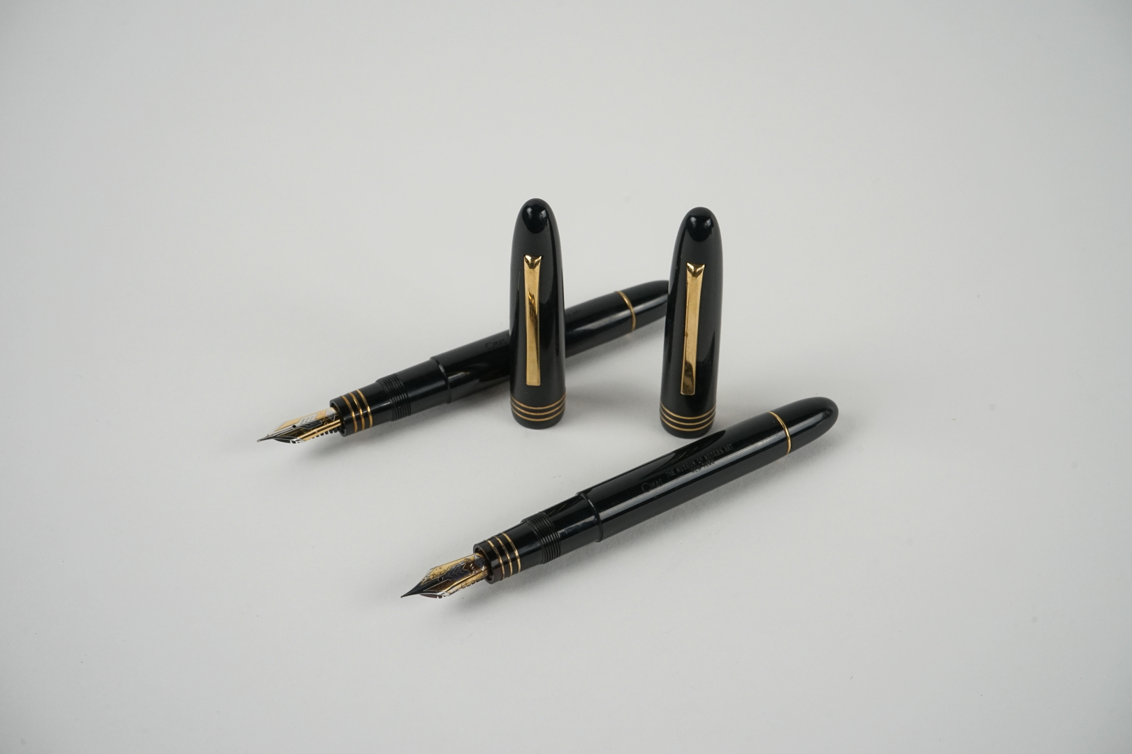 Signed two-tone 14K gold nibs, sizes EF and F, piston filler.