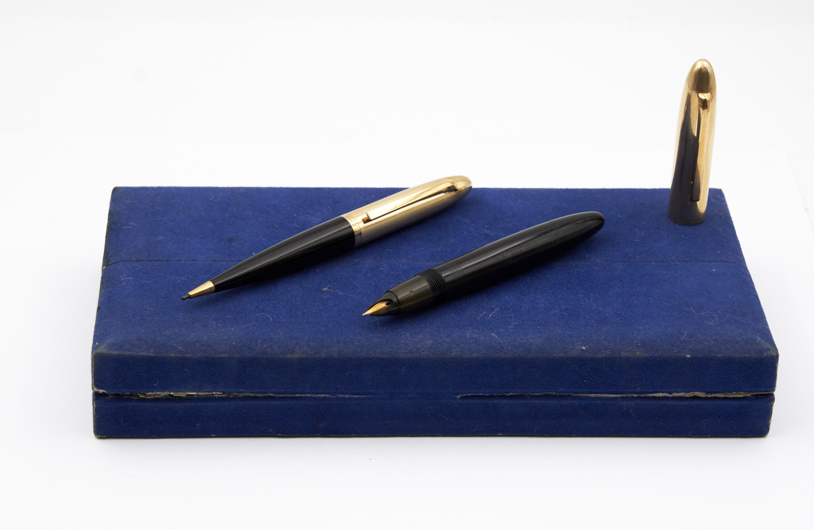 14K gold nib, presumably size F, piston filler, gold-plated cap and black body.