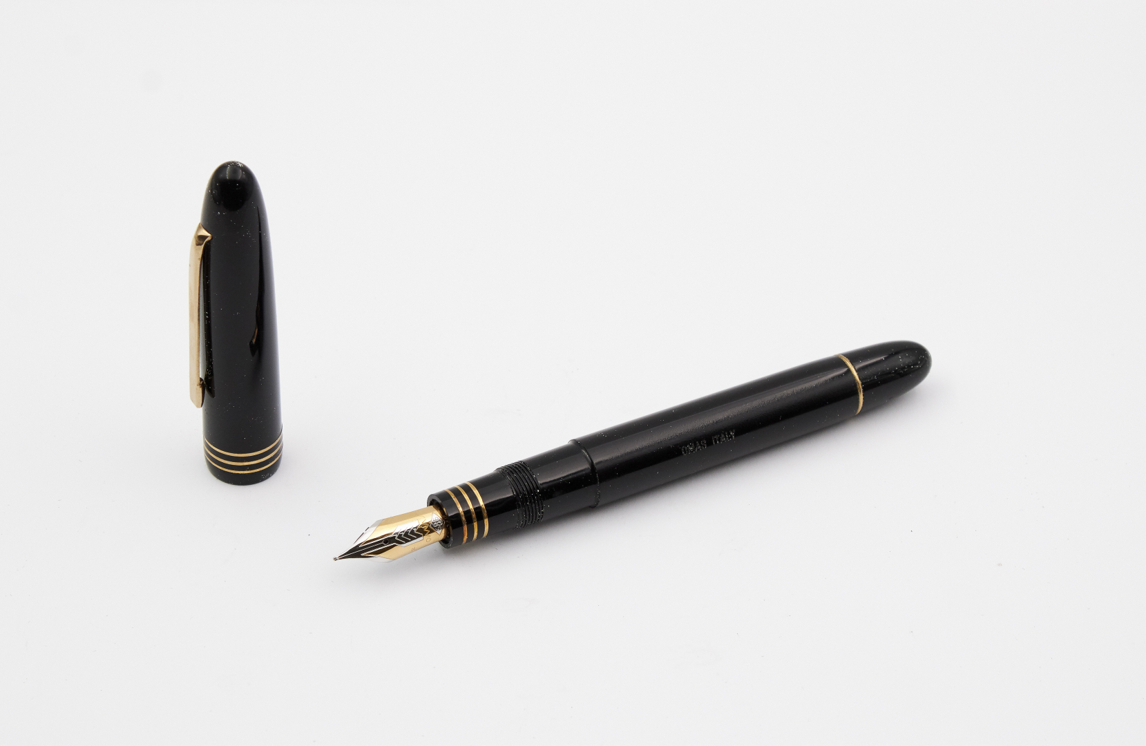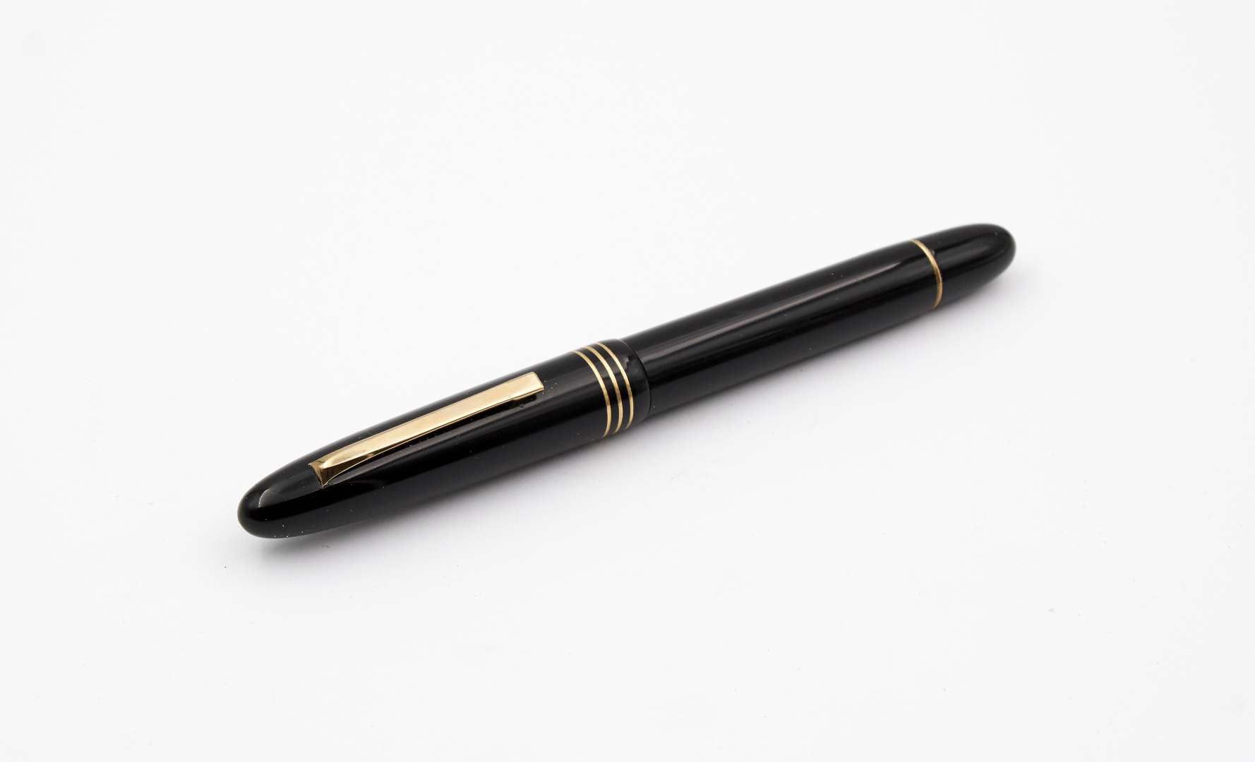 Signed two-tone 18K gold nib, M size, piston filler, black resin.