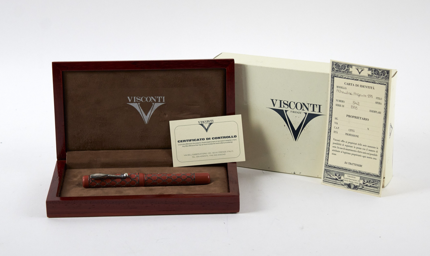 VISCONTI ALHAMBRA FOUNTAIN PEN, LIMITED EDITION N. 542 OF 888 PIECES, BOX AND GUARANTEE