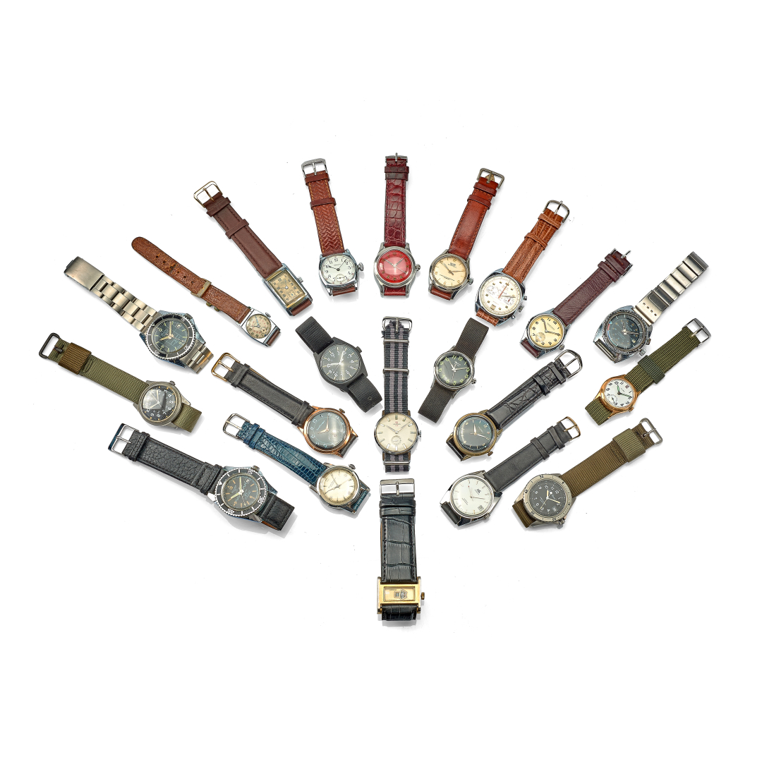 Lot comprising various watches from various brands and eras, with steel and chrome-plated cases, including one in 18K gold. Some chronographs are also included. Lot sold "as is".