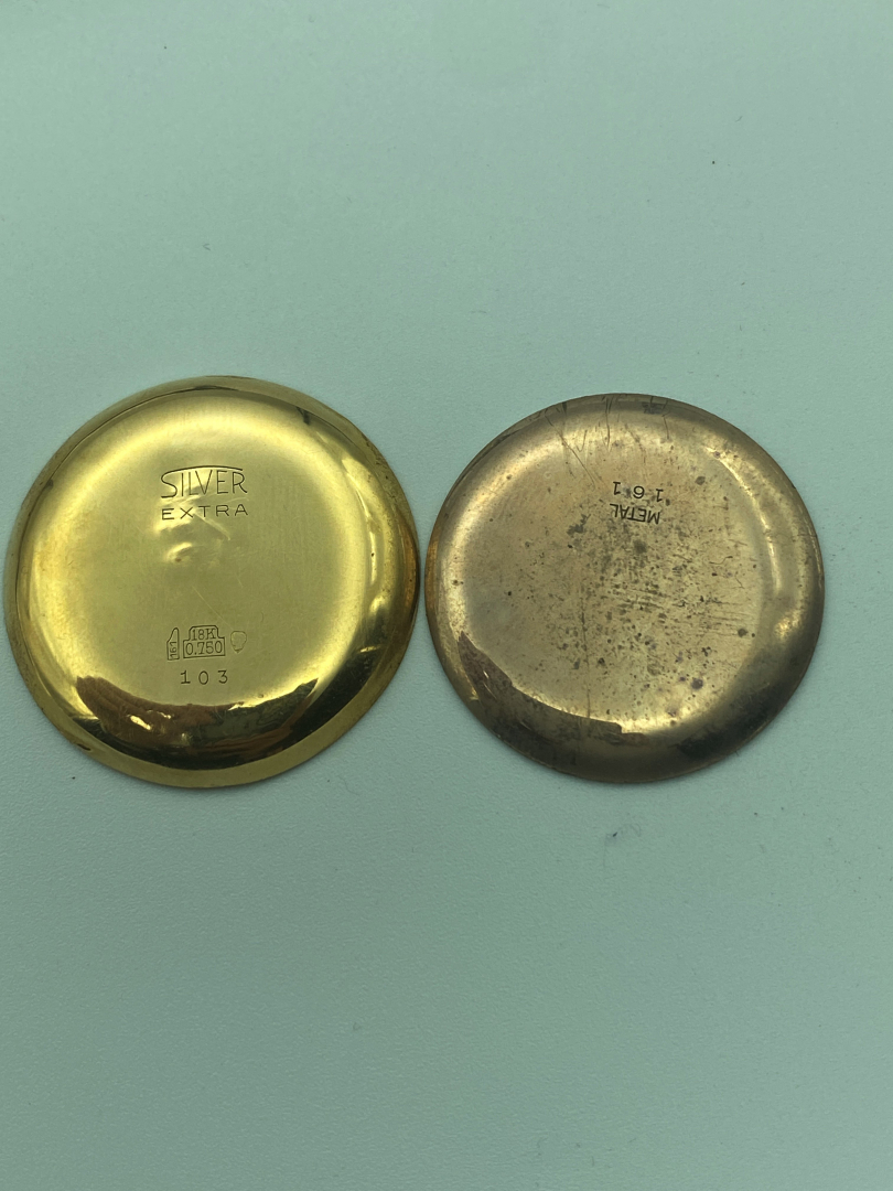 Case: signed, n. 103, in 18K gold, snap on caseback, metal dust cover.