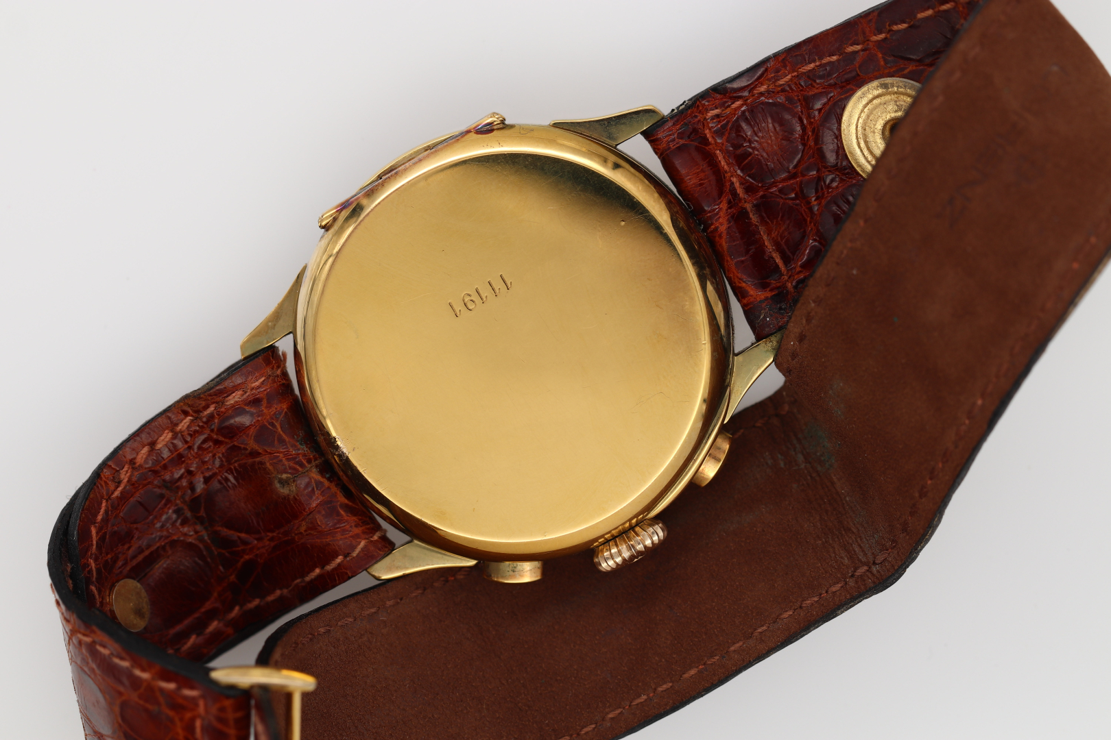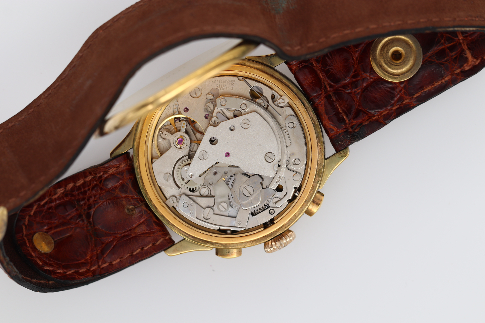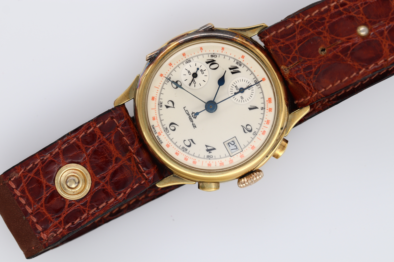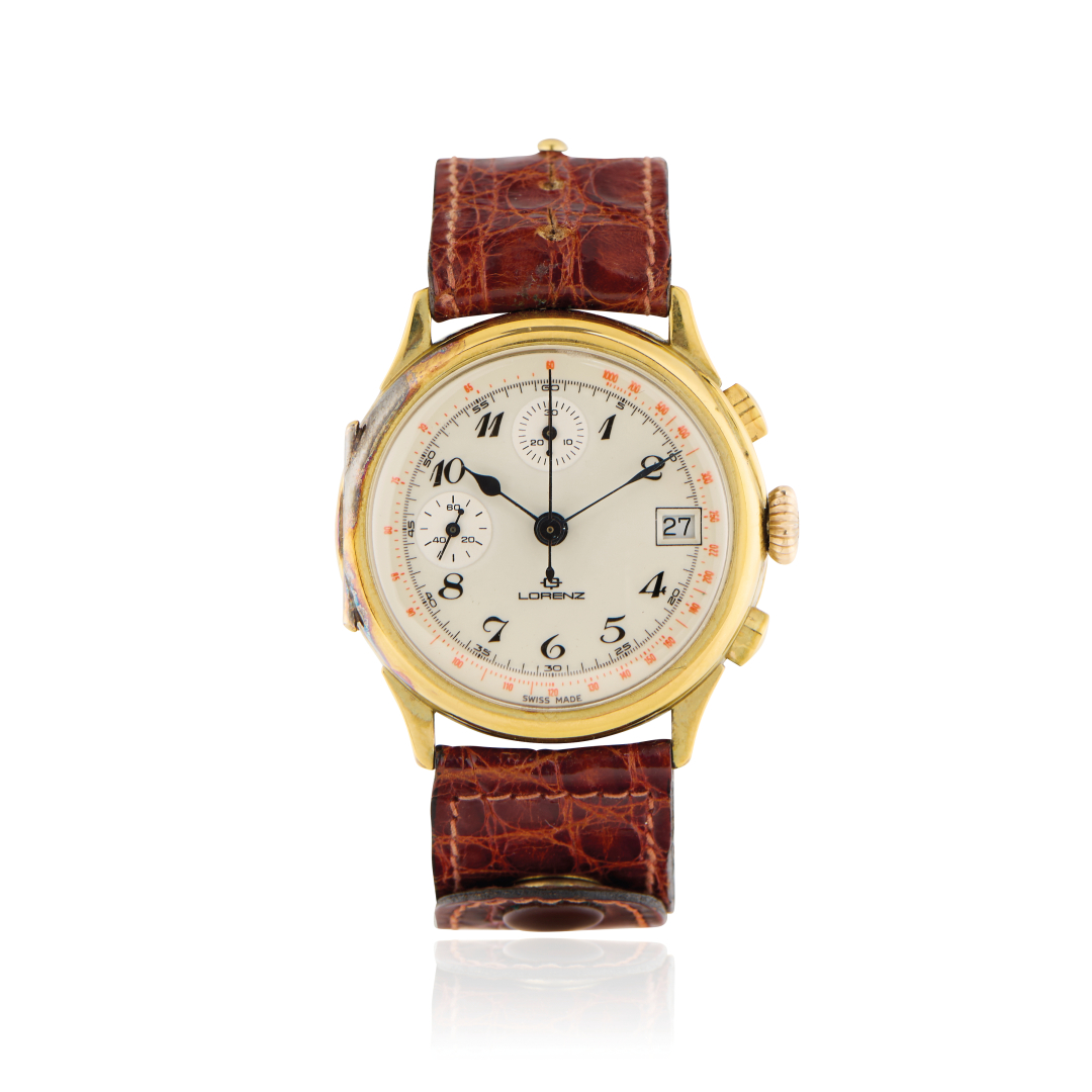 Dial: signed, cream white, printed numerals, continuous seconds, 30-minute counter, tachymeter scale, date.