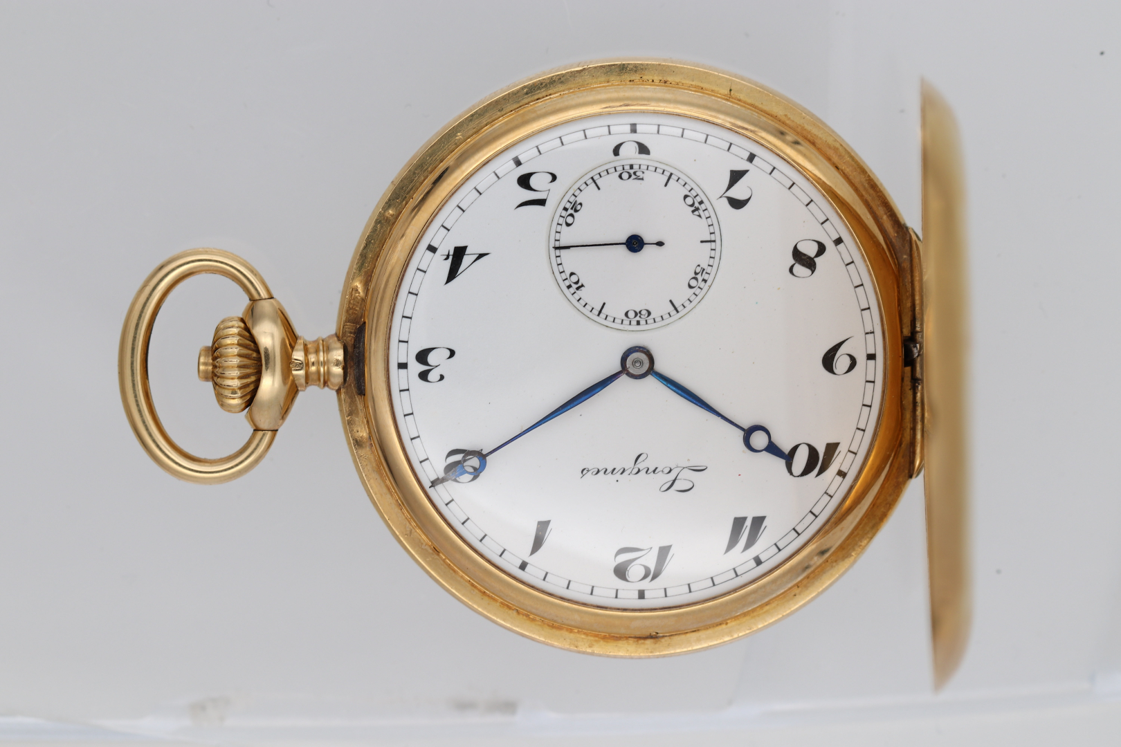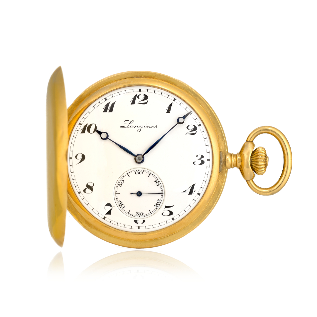Dial: signed, white enamel, painted numerals, seconds at six.