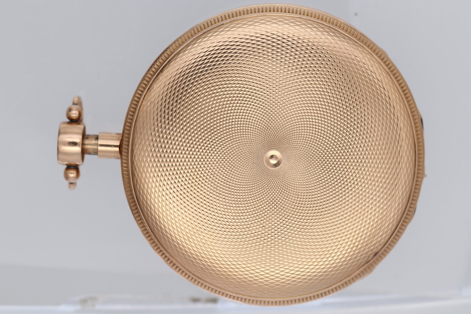 Dial: gilt guilloché, numerals within white enamel cartouches.