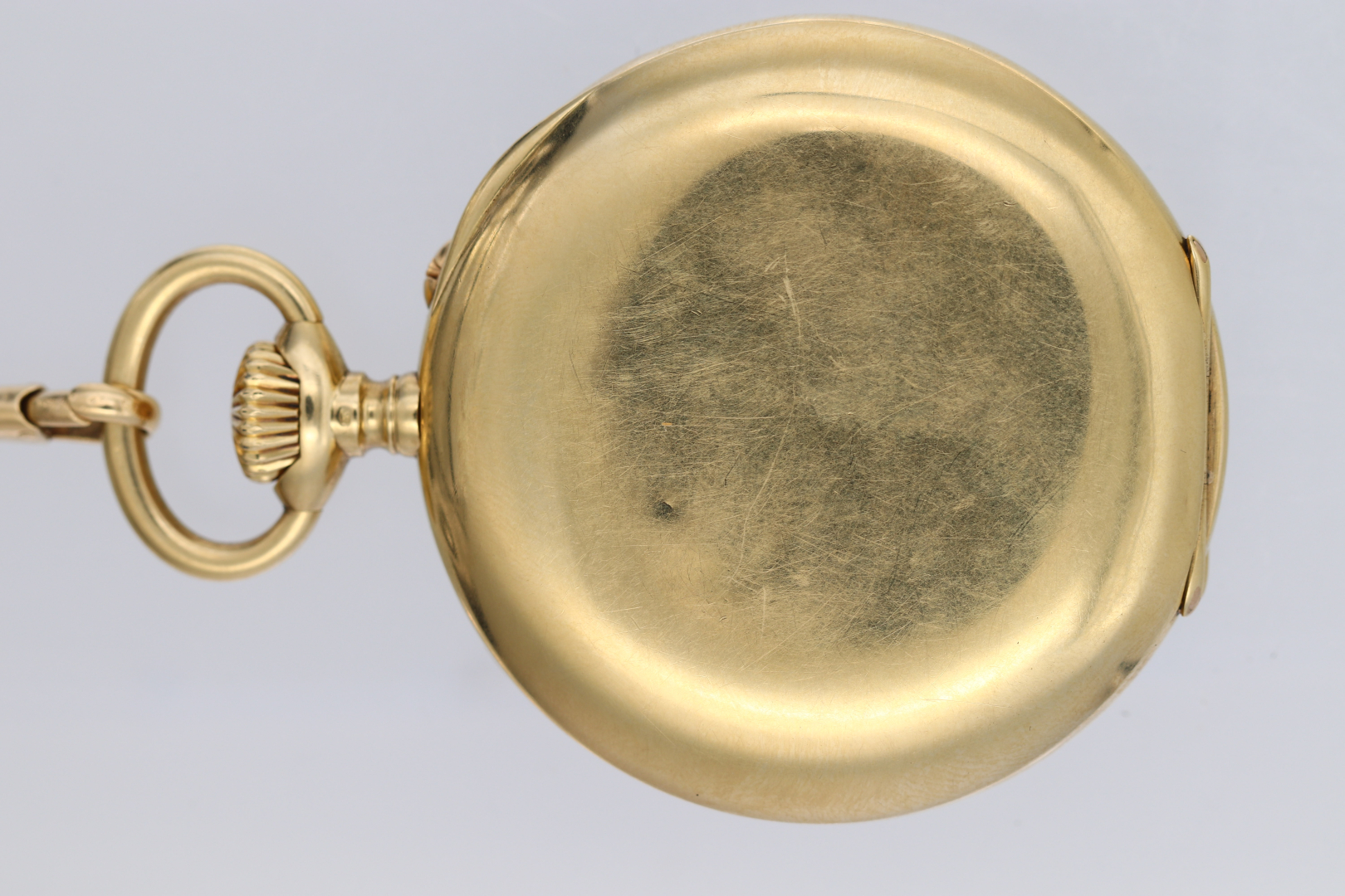 Dial: signed, white enamel, painted numerals, seconds at six.