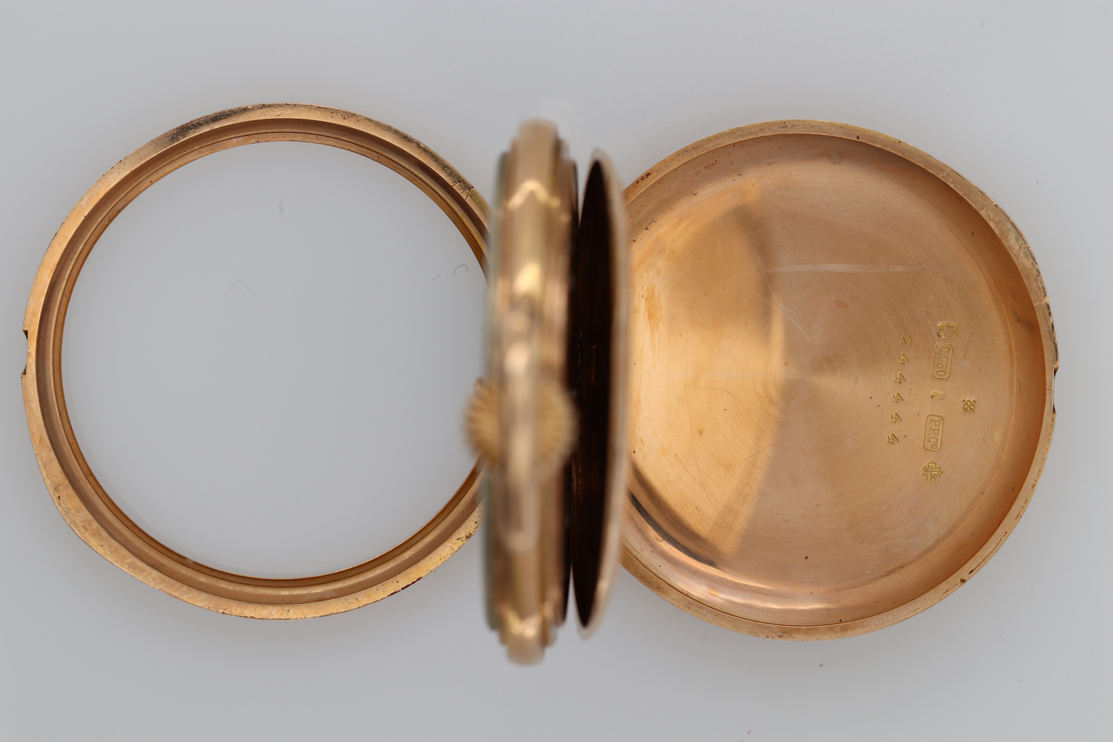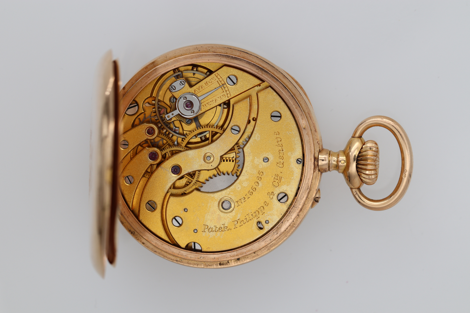 Case: signed, n. 244444, in 18K pink gold, back engraved with monogram surmounted by a seven-pointed crown, cuvette engraved and signed Ch. Grottendieck.