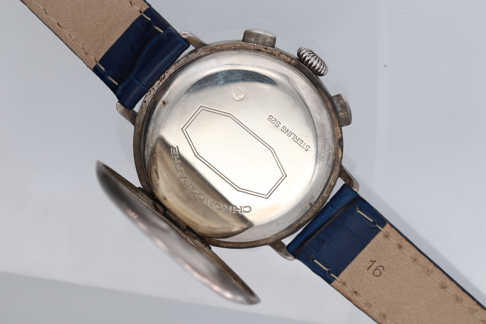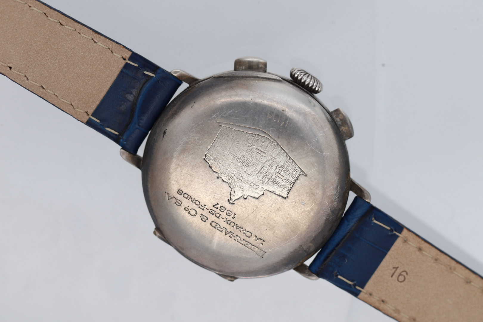 Dial: signed, white enamel, painted numerals, continuous seconds, 30-minute counter, tachymeter and telemeter scales.