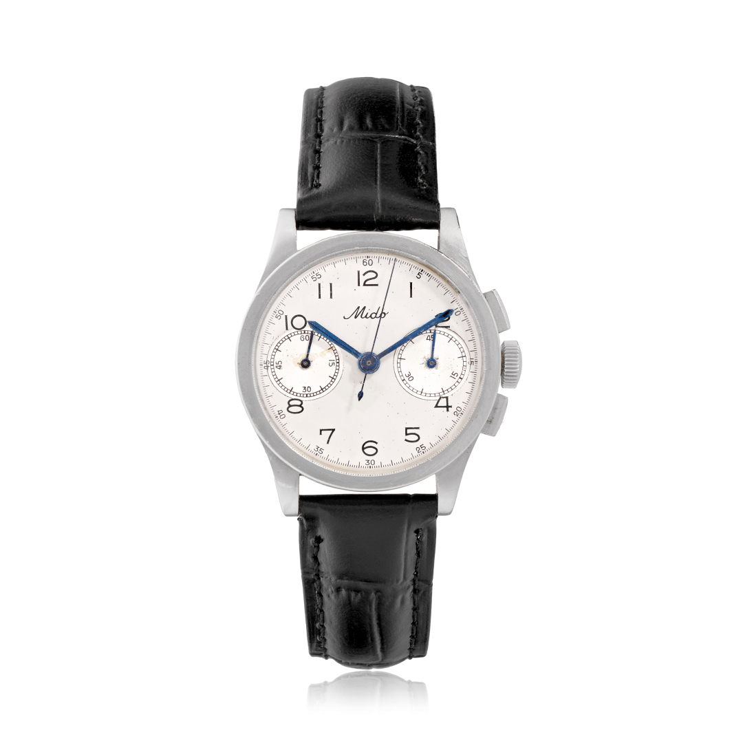 Dial: signed, argentée, painted numerals, 45-minute counter, seconds at 9.