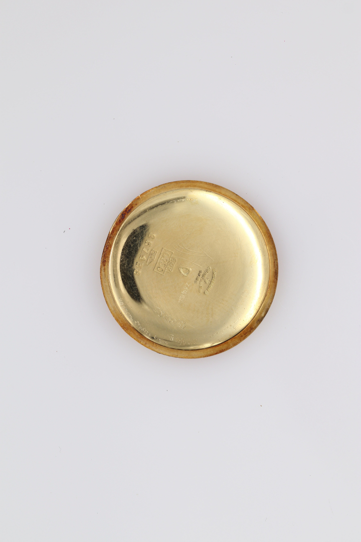 Case: signed, n. 267438, in 18K gold, snap-on caseback.