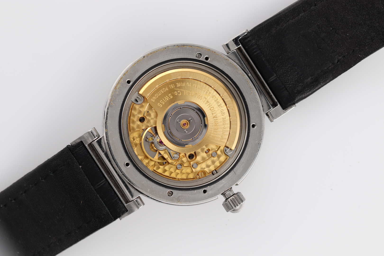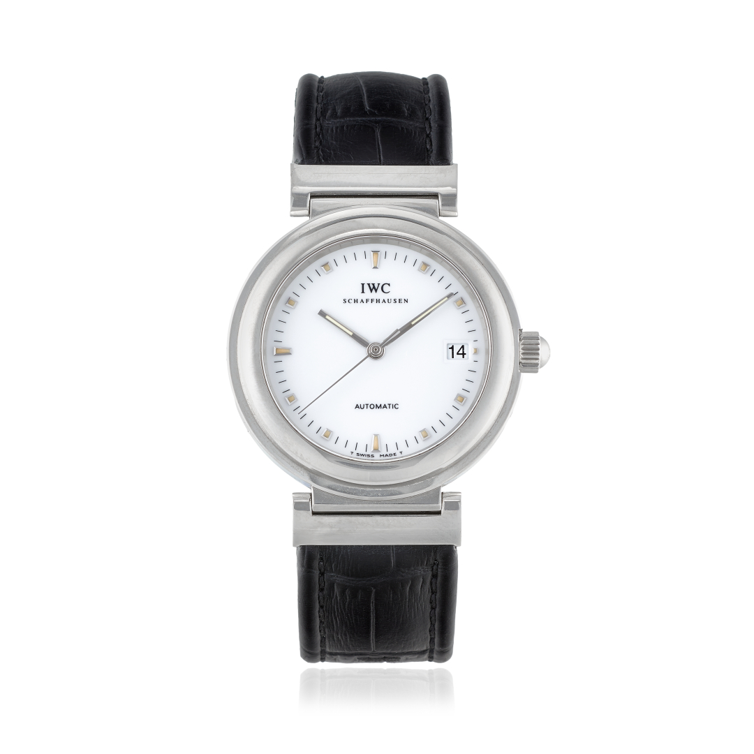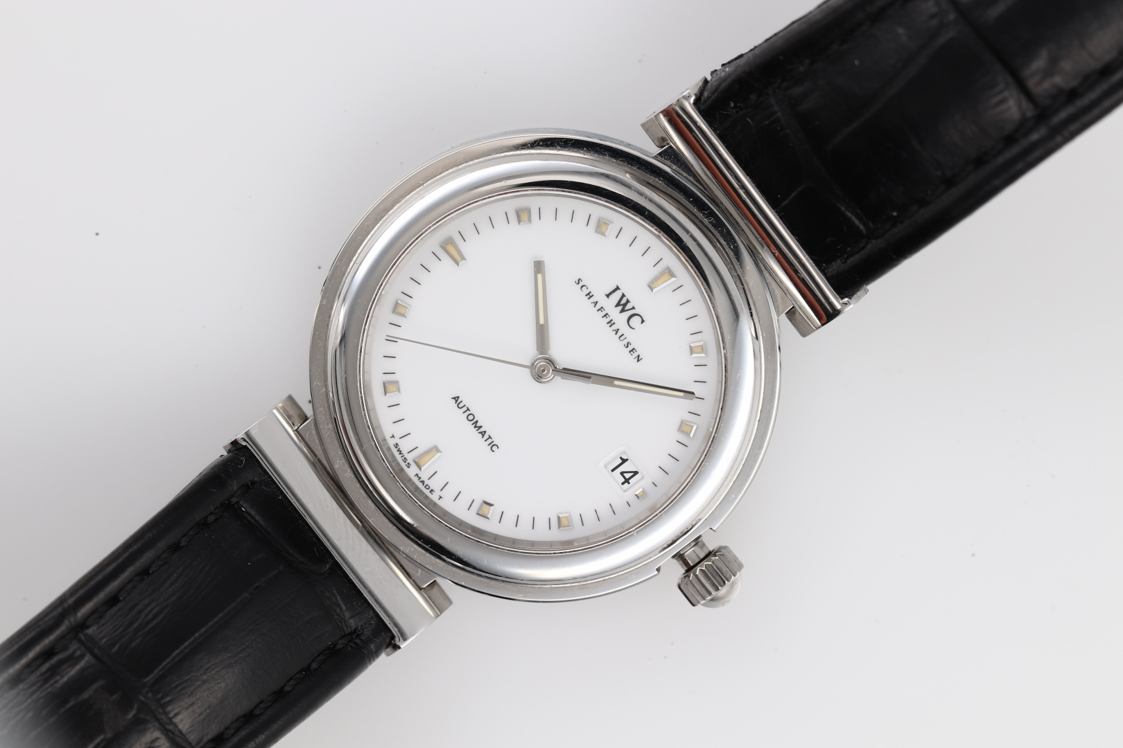 Dial: signed, white porcelain-like, applied luminous indexes, centre seconds, date.