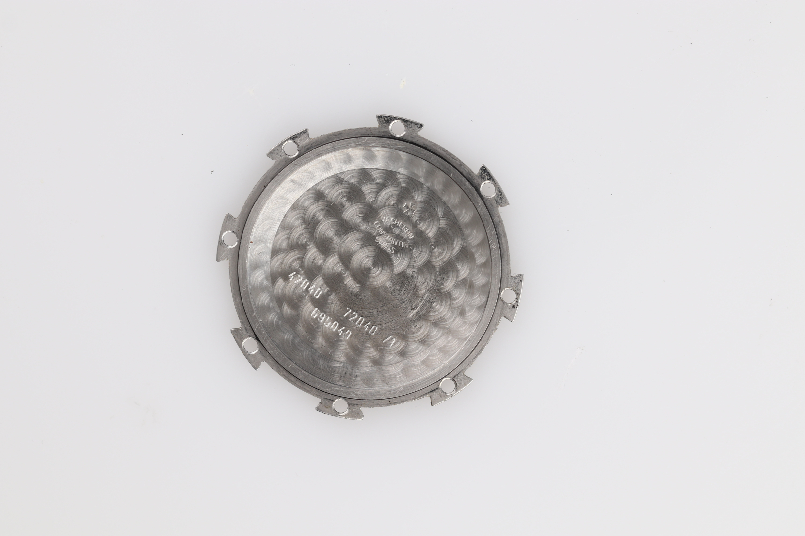 Case: signed, n. 695049, in stainless steel, caseback with screws.