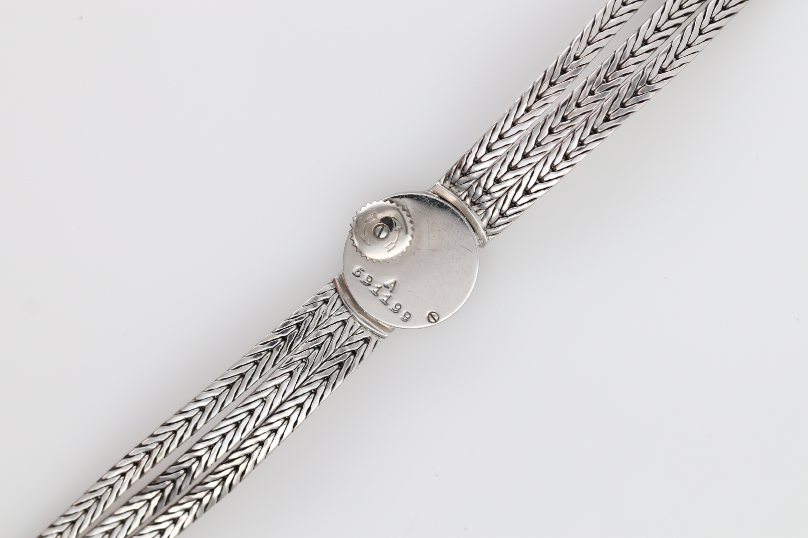Bracelet/Strap: integrated 18K white gold three-row bracelet.