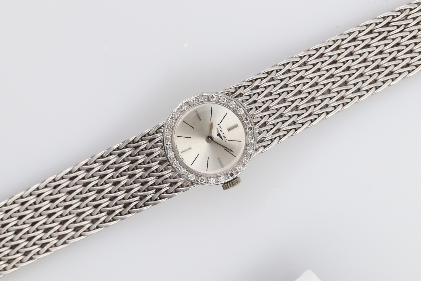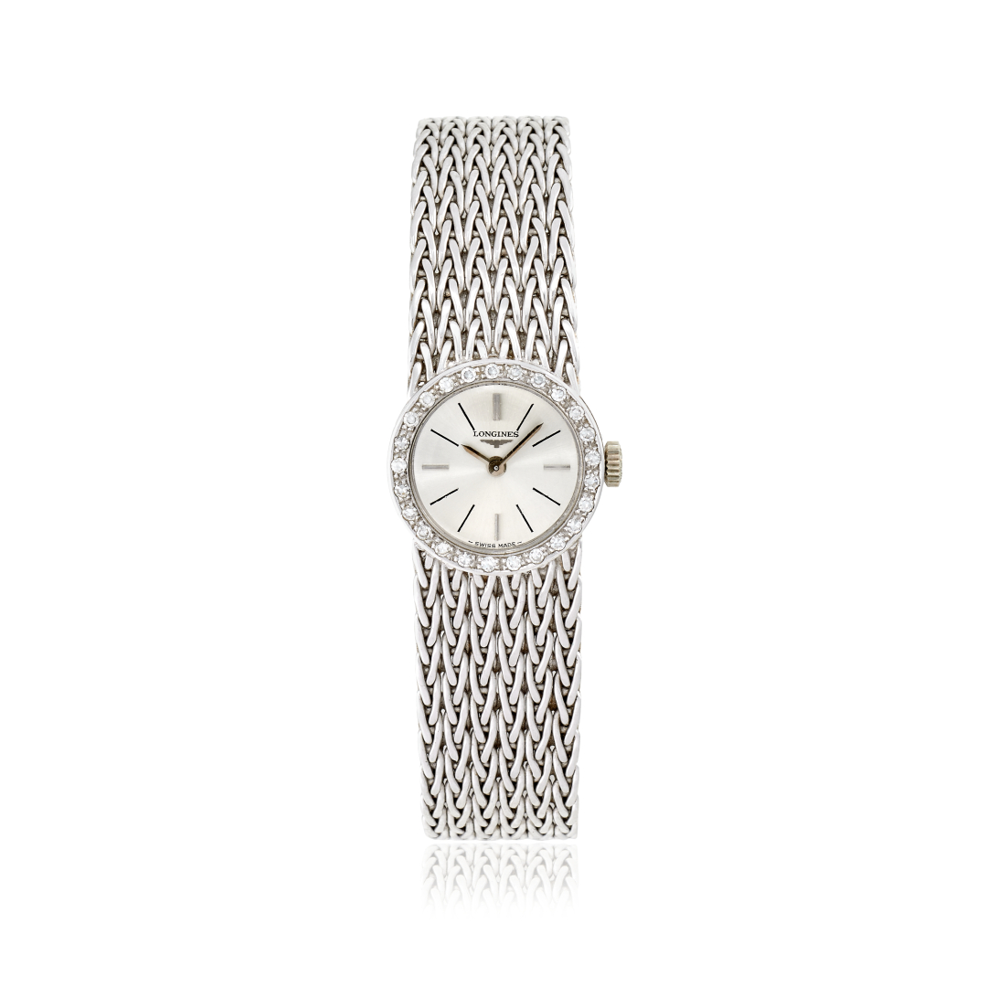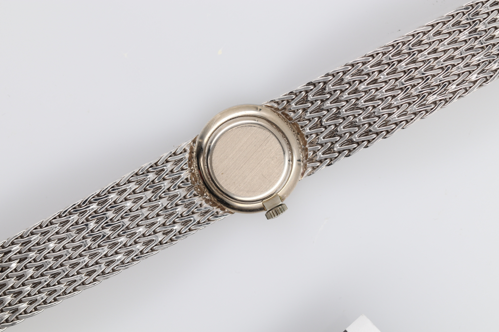 Case: signed, n. 40736, in 18K white gold, snap-on caseback, gem-set bezel.