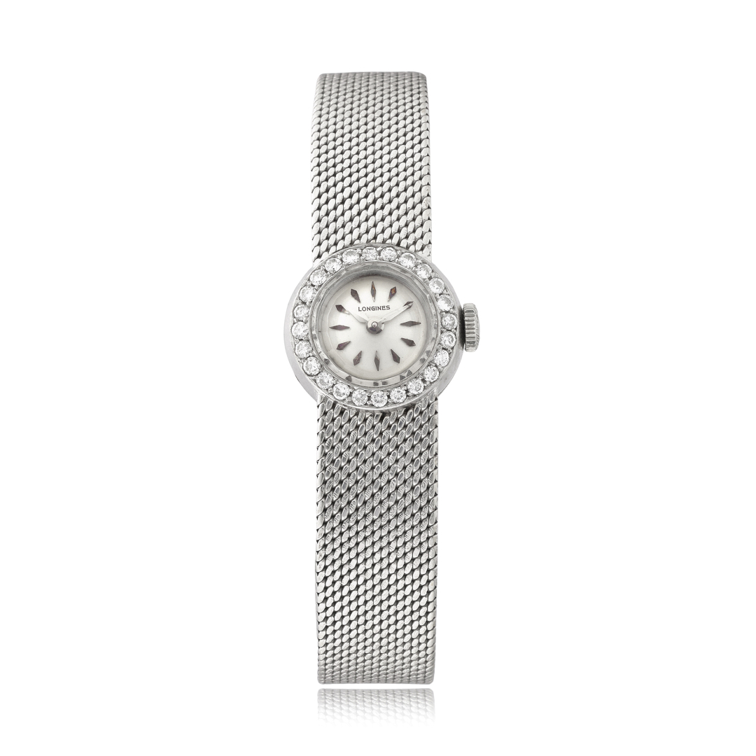 Case: signed, in 18K white gold, snap-on caseback, diamond-set bezel.