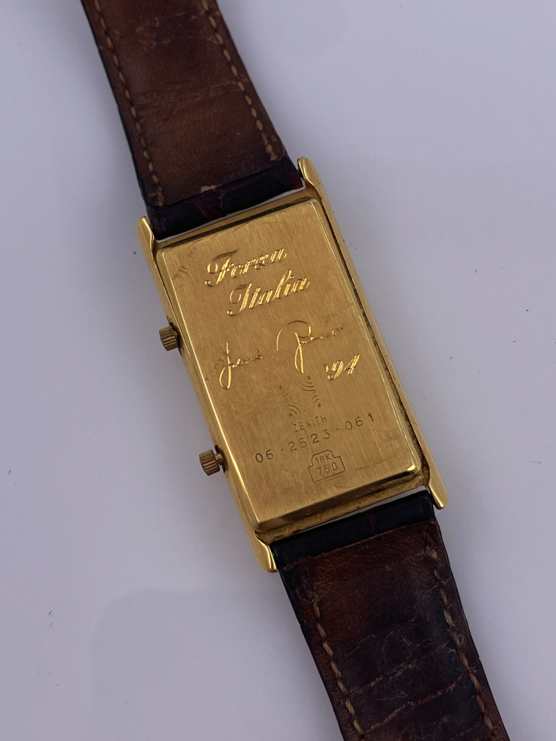 Case: signed, n. 06-2523-061, in 18K gold, snap-on caseback engraved “Forza Italia, Silvio Berlusconi, ’94”.