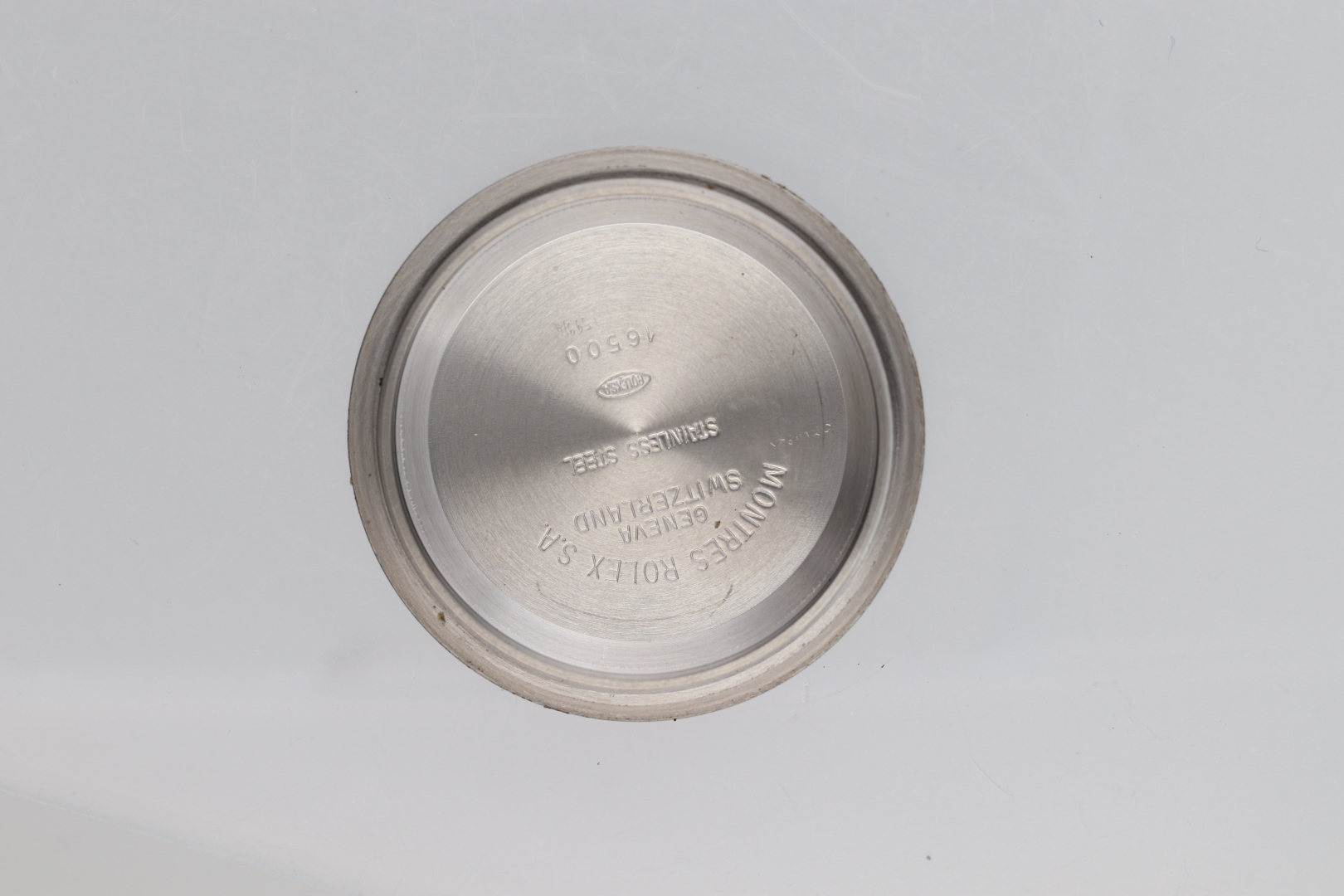 Case: signed, n. S569862, in stainless steel, screw-down caseback marked 16500, graduated gold bezel.