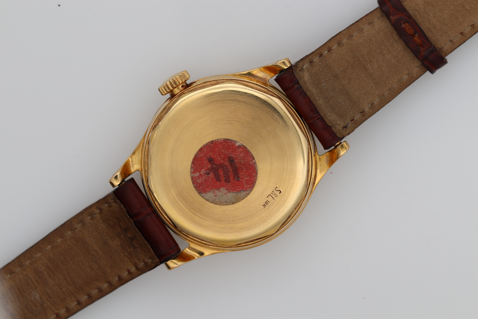 Case: signed, n. 2604332, in 18K gold, screw-down caseback marked “S&L”, inner dust cover.