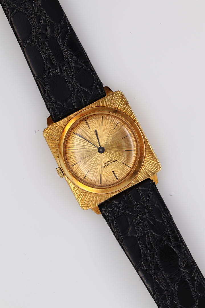 Dial: signed, sunburst engraved, printed indexes.