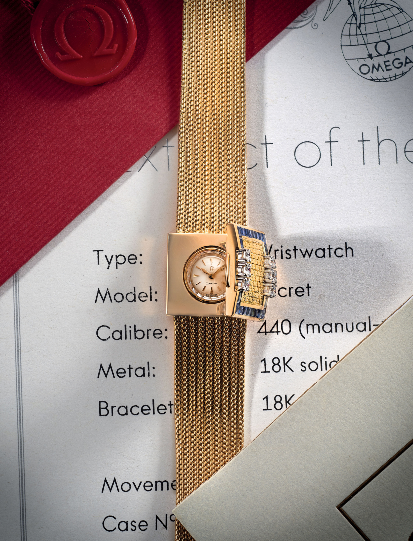 OMEGA SECRET REF. OT7073 IN ORO E PIETRE PREZIOSE, DEL 1958