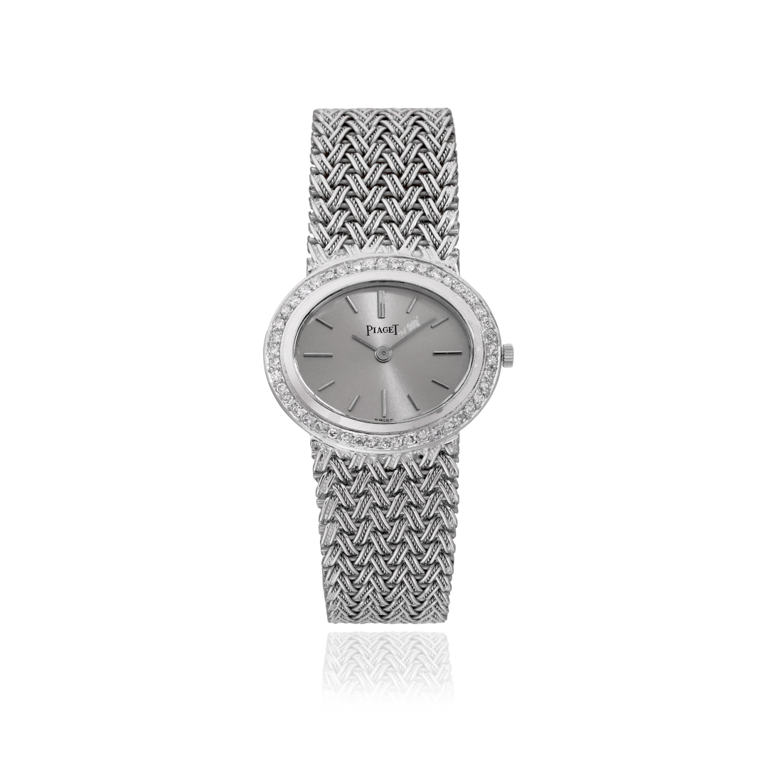 Bracelet/Strap: integrated 18K white gold woven bracelet.