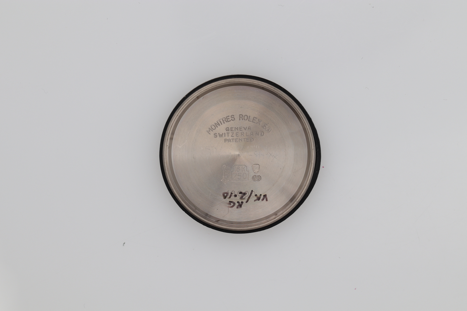 Case: signed, n. 5726929, 18K white gold, screwed caseback 18000, custom diamond-set bezel.