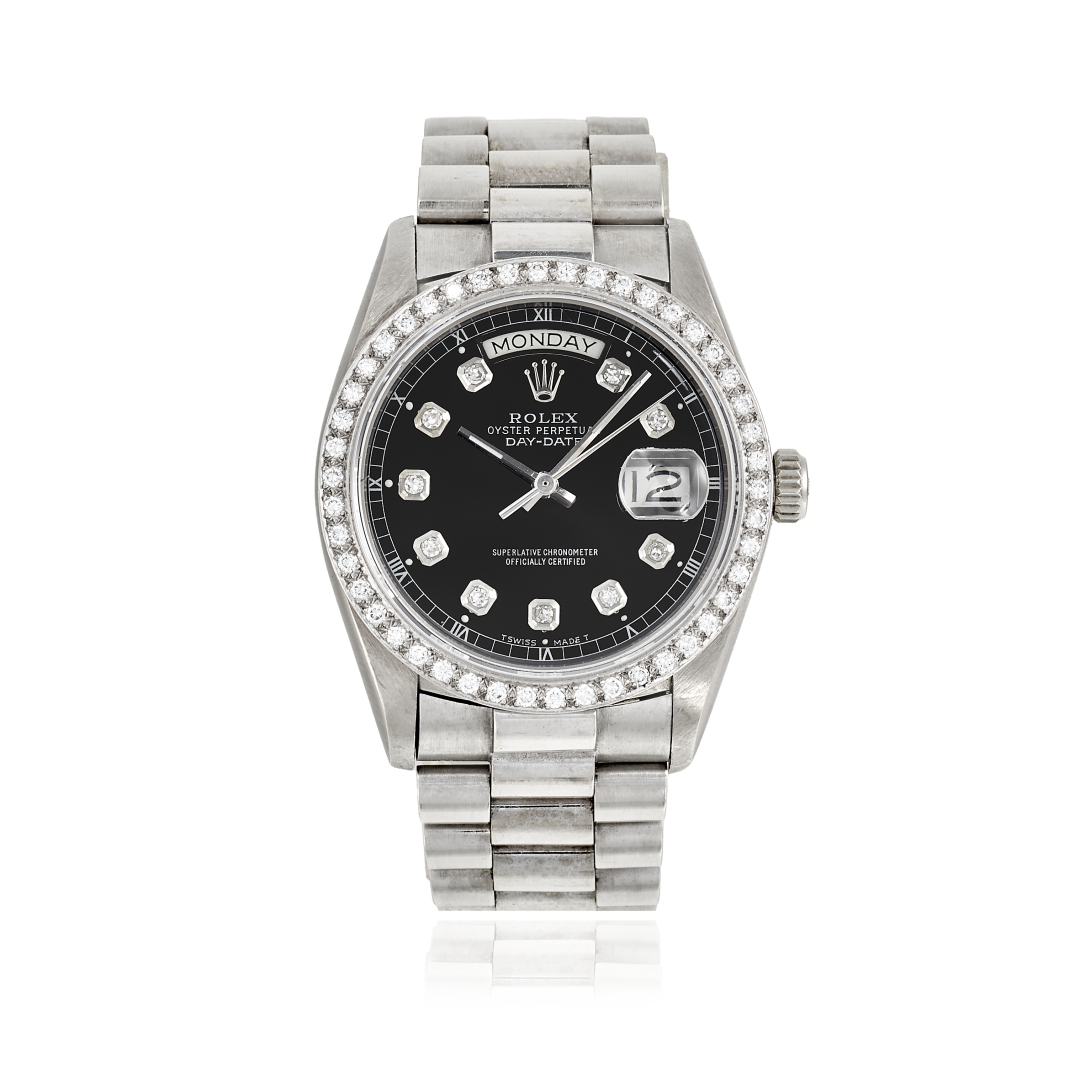 Bracelet/Strap: signed, President bracelet in 18K white gold, end links 55, deployant clasp stamped D.