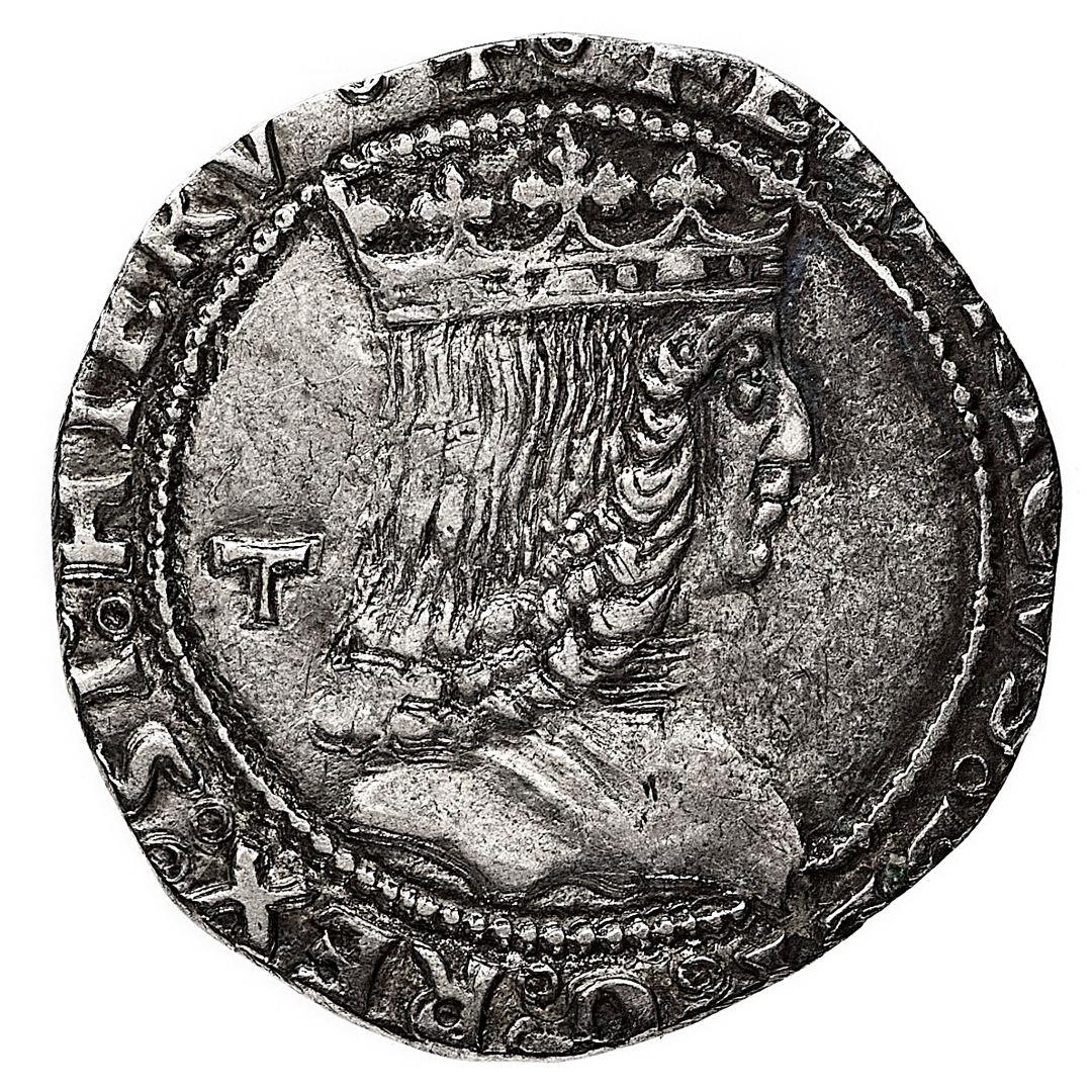 Federico III d'Aragona (1496-1501) - Carlino - Zecca: Napoli - Diritto: busto coronato e corazzato del Re a destra; nel campo, a sinistra, la lettera "T" - Rovescio: libro in fiamme - gr. 2,91 - Rara - Leggermente tosata, migliore di BB