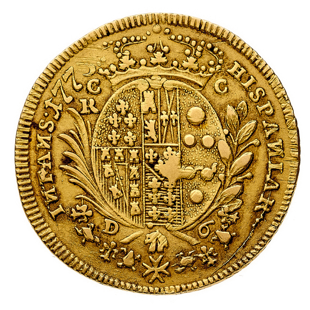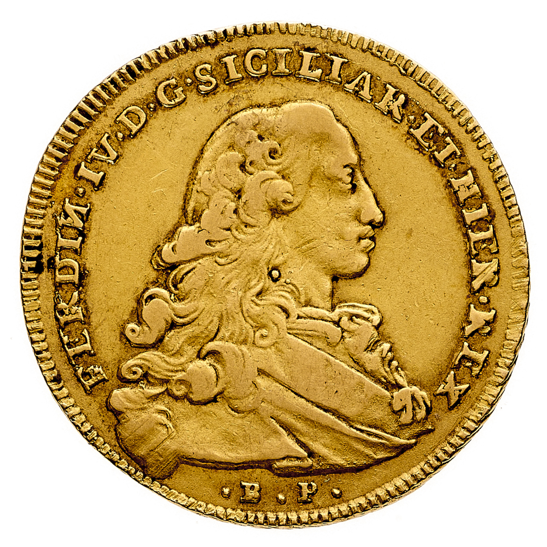 Ferdinando IV di Borbone (1759-1799) - 6 Ducati 1773 - Zecca: Napoli - Diritto: busto paludato del Re a destra - Rovescio: stemma coronato fra due rami di palma e di alloro intrecciati alla base - gr. 8,80 - Migliore di BB