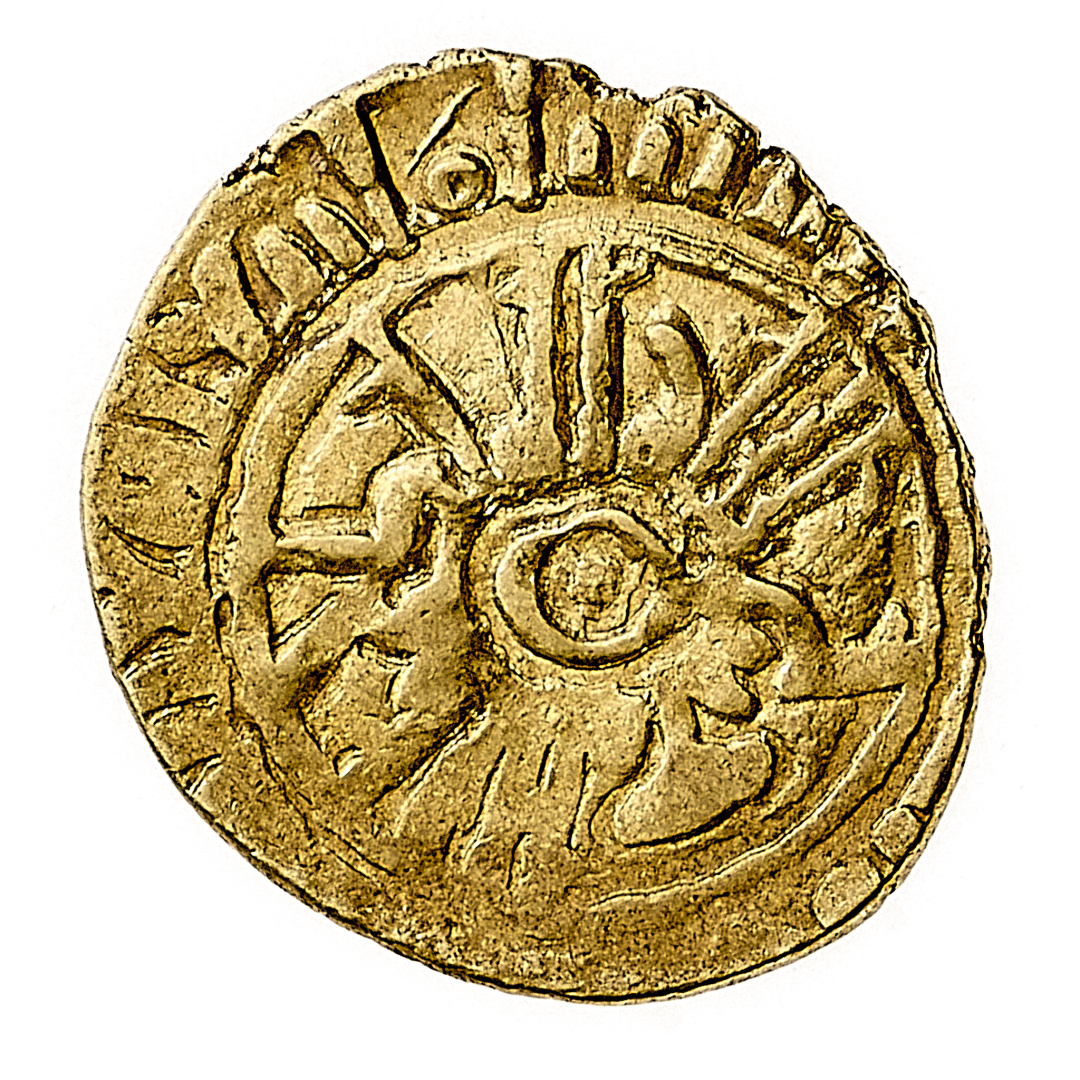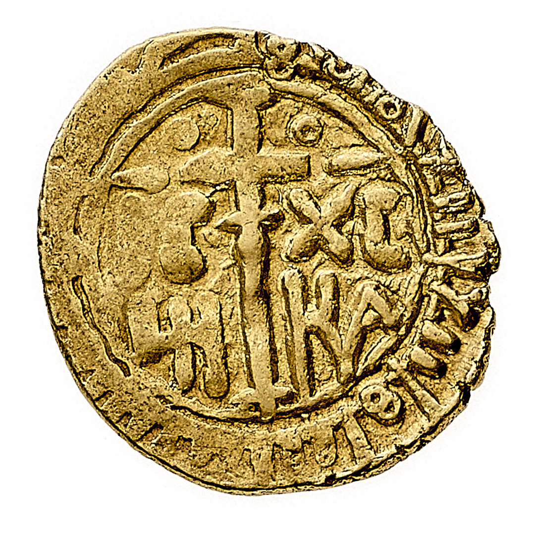 Ruggero II Re di Sicilia (1130-1154) - Tarì d'oro con il titolo regale databile a dopo il 1140 - Zecca: Palermo o Messina - Diritto: globetto al centro, intorno al quale si sviluppano due livelli di legenda circolare concentrica - Rovescio: croce innestata su un'asta e accostata da due coppie di sigle sovrapposte - gr. 1,20 - Lievi debolezze di conio, altrimenti q.SPL