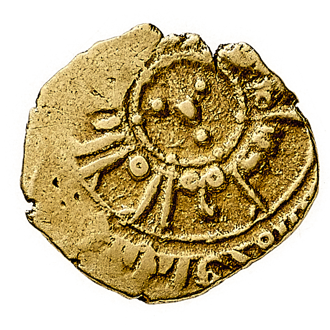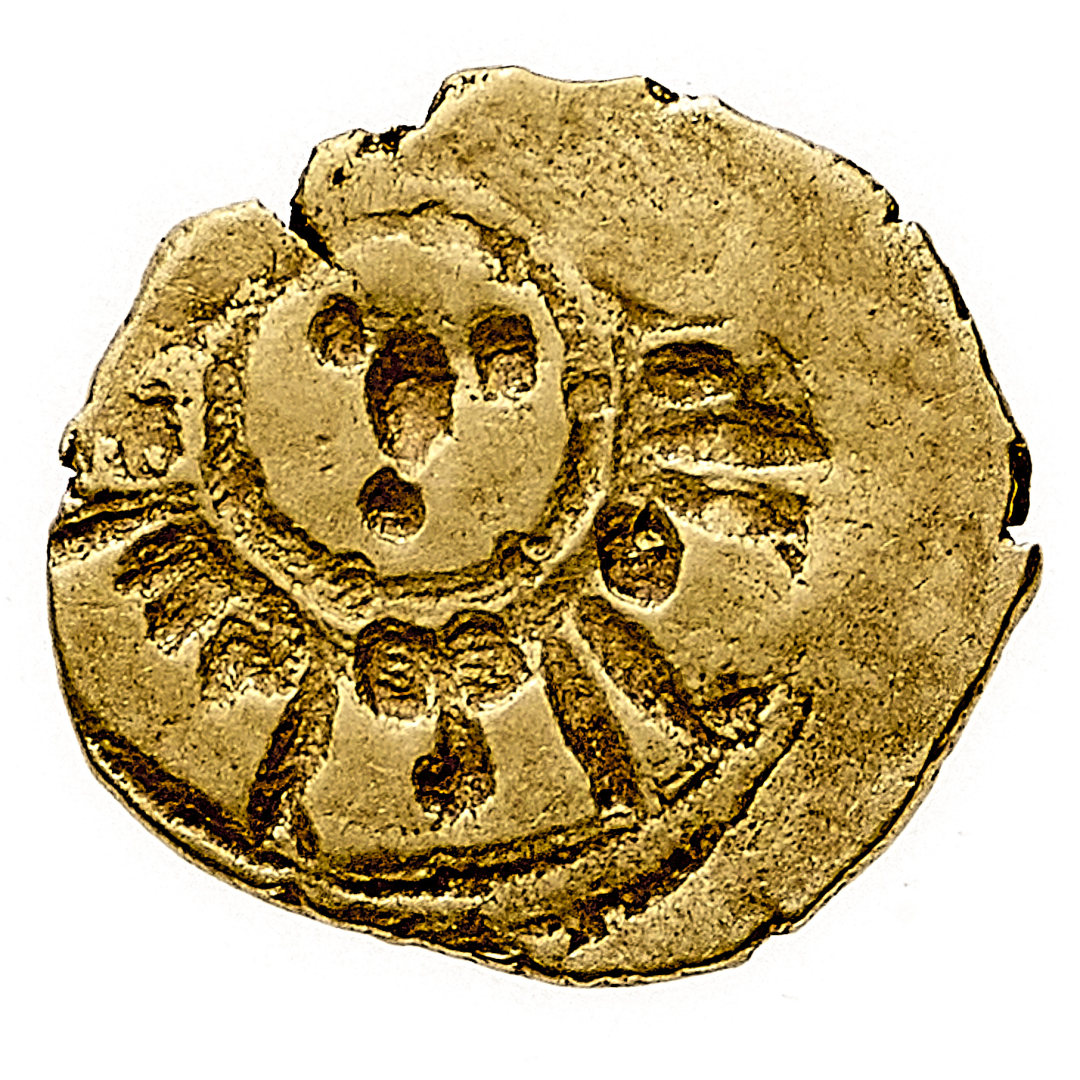 Guglielmo I Re di Sicilia (1154-1166) - Tarì - Zecca: Palermo o Messina - Diritto: globetti al centro, intorno al quale si sviluppano due livelli di legenda circolare concentrica - Rovescio: globetti al centro, intorno al quale si sviluppano due livelli di legenda circolare concentrica in incuso - gr. 0,76 - Molto rara con rovescio in incuso - Migliore di BB
