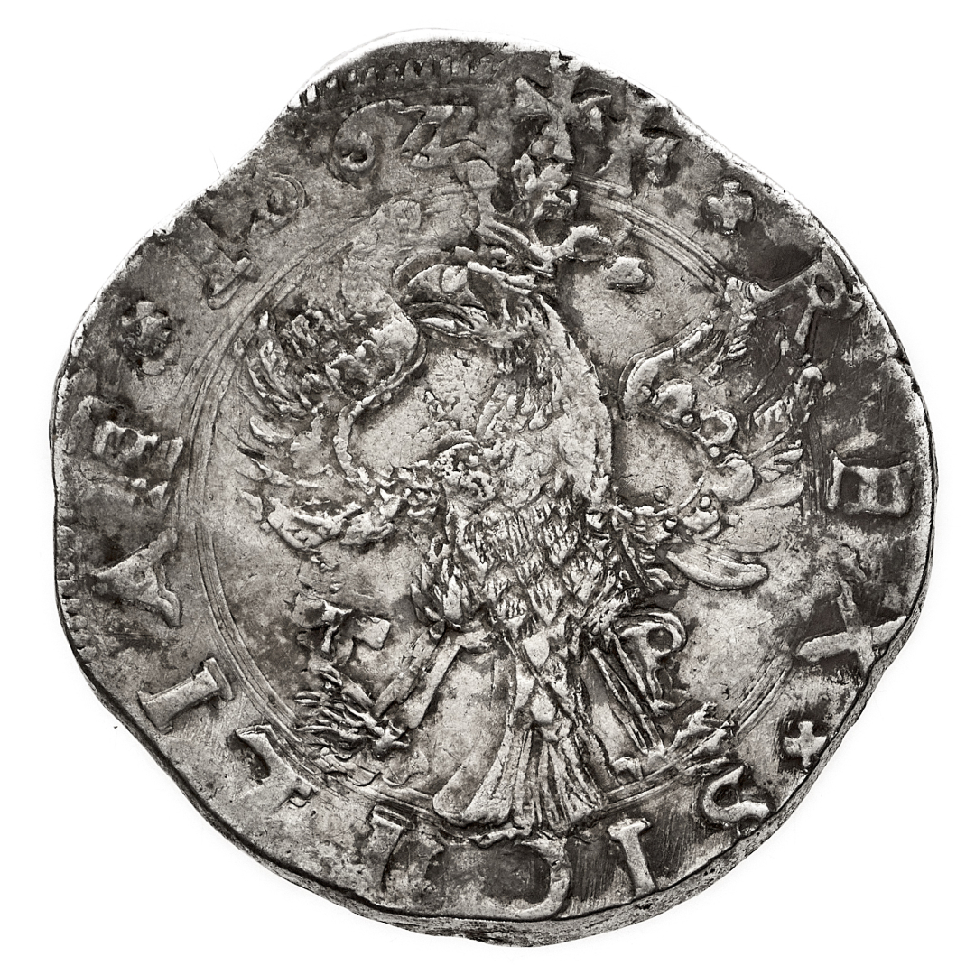Filippo II di Spagna (1556-1598) - 4 Tarì 1562 - Zecca: Messina - Diritto: busto corazzato del Re a destra - Rovescio: aquila coronata ad ali spiegate - gr. 11,72 - BB