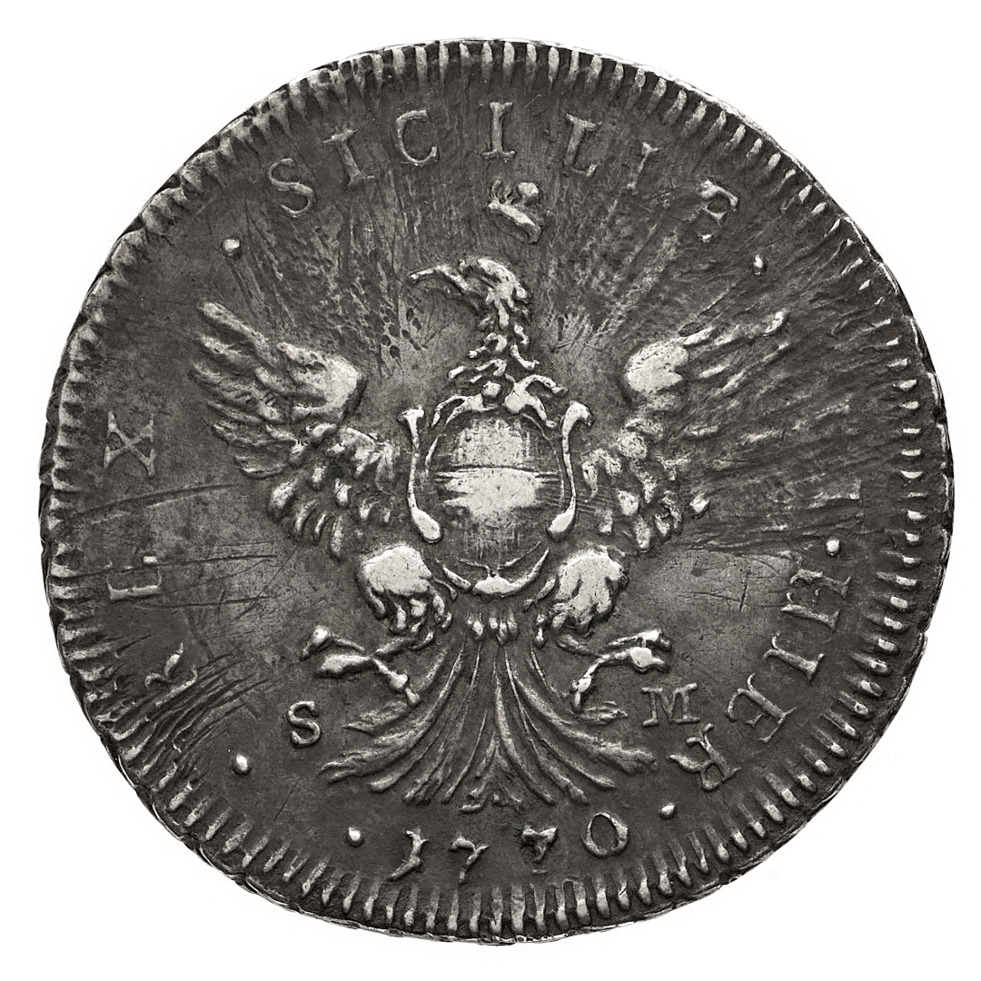 Carlo III d'Asburgo (1720-1734) - 4 Tarì 1730 - Zecca: Palermo - Diritto: effigie del Re a destra - Rovescio: aquila coronata ad ali aperte con stemma asburgico sul petto - gr. 9,57 - Migliore di BB