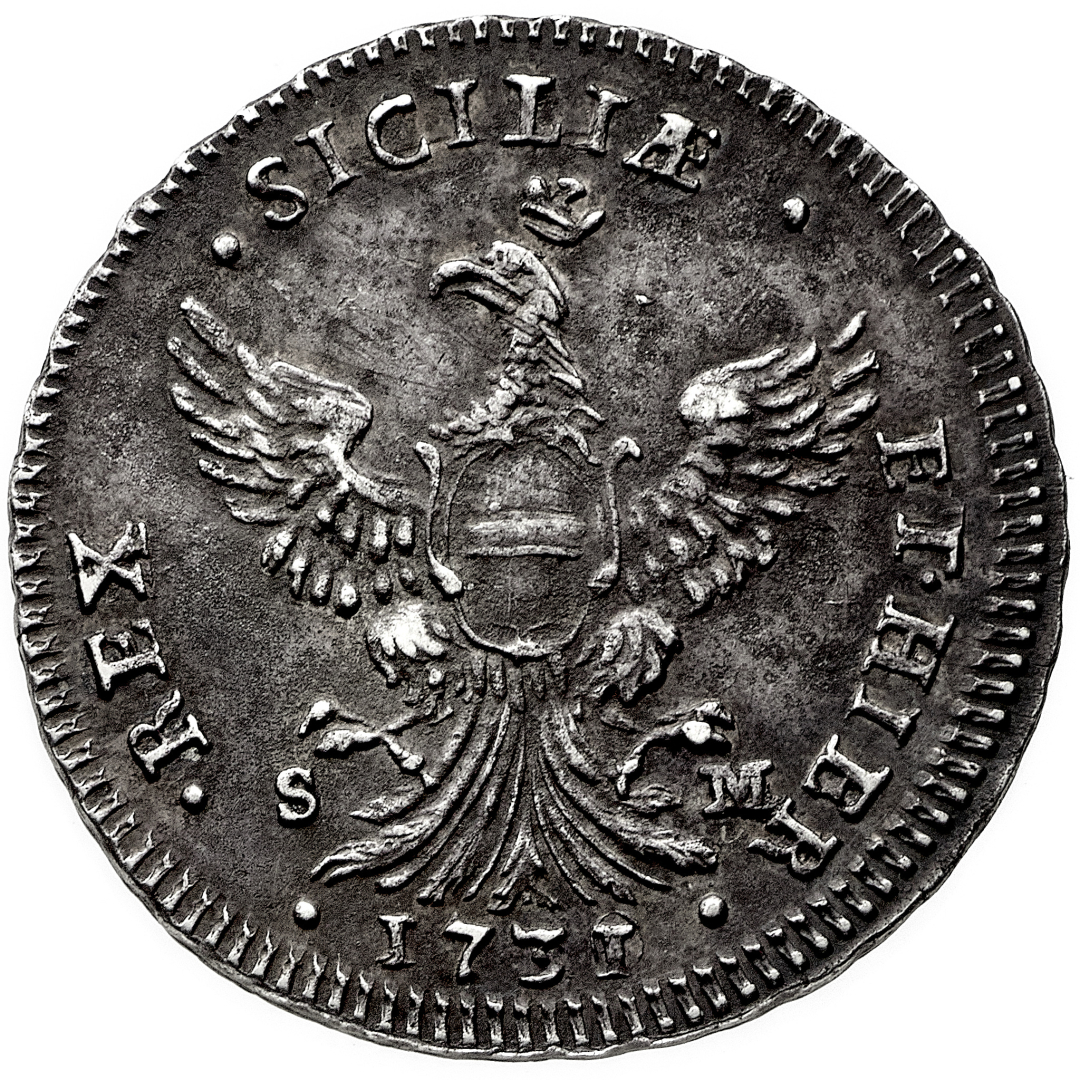 Carlo III d'Asburgo (1720-1734) - 4 Tarì 1731 - Zecca: Palermo - Diritto: effigie del Re a destra - Rovescio: aquila coronata ad ali aperte con stemma asburgico sul petto - gr. 9,80 - q.SPL
