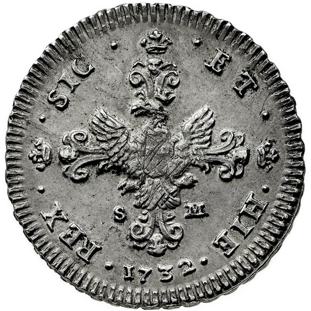 Carlo III d'Asburgo (1720-1734) - 6 Tarì 1732 - Zecca: Palermo - Diritto: effigie del Re a destra - Rovescio: aquila asburgica caricata su croce alle estremità - gr. 14,72 - Graffi di conio al rovescio, SPL
